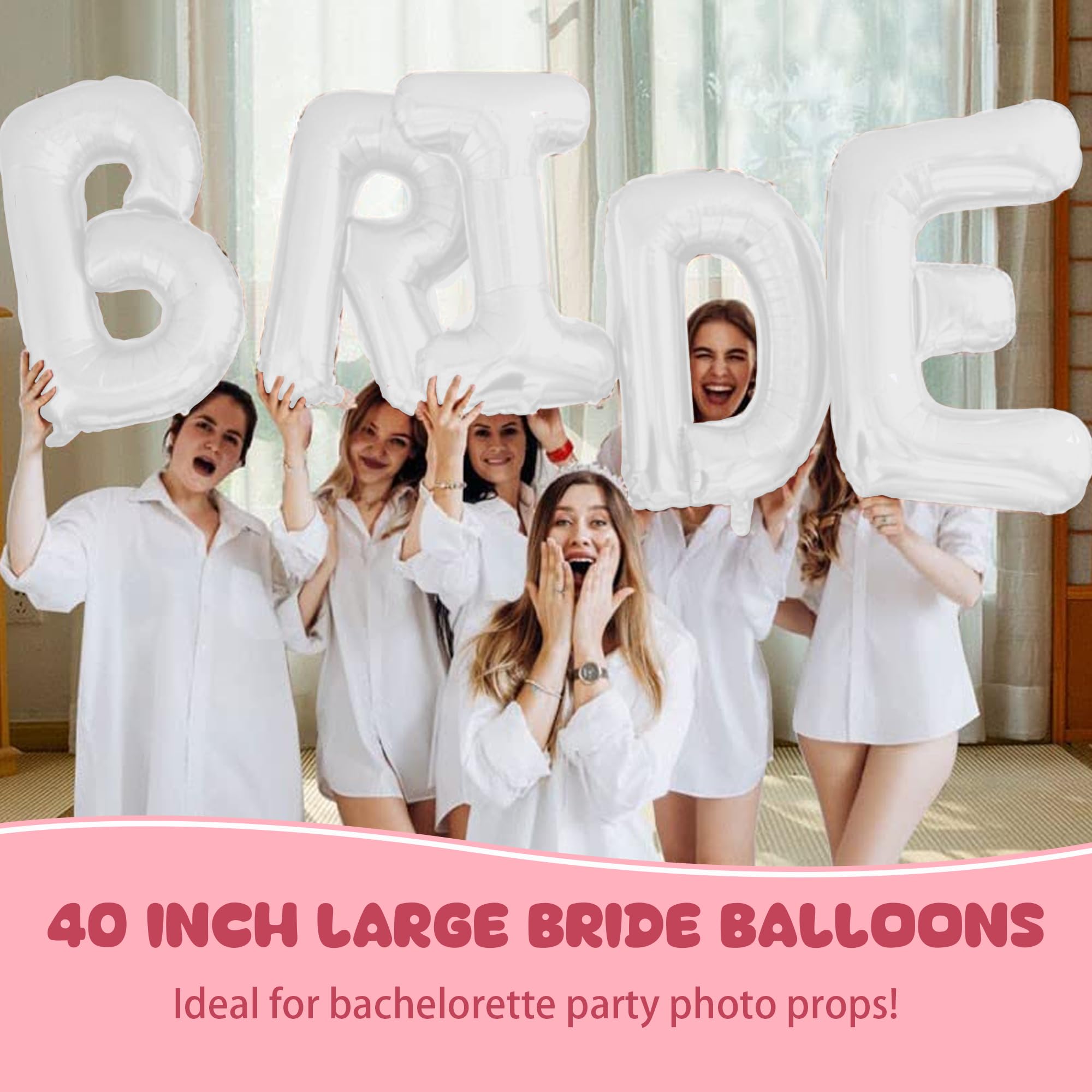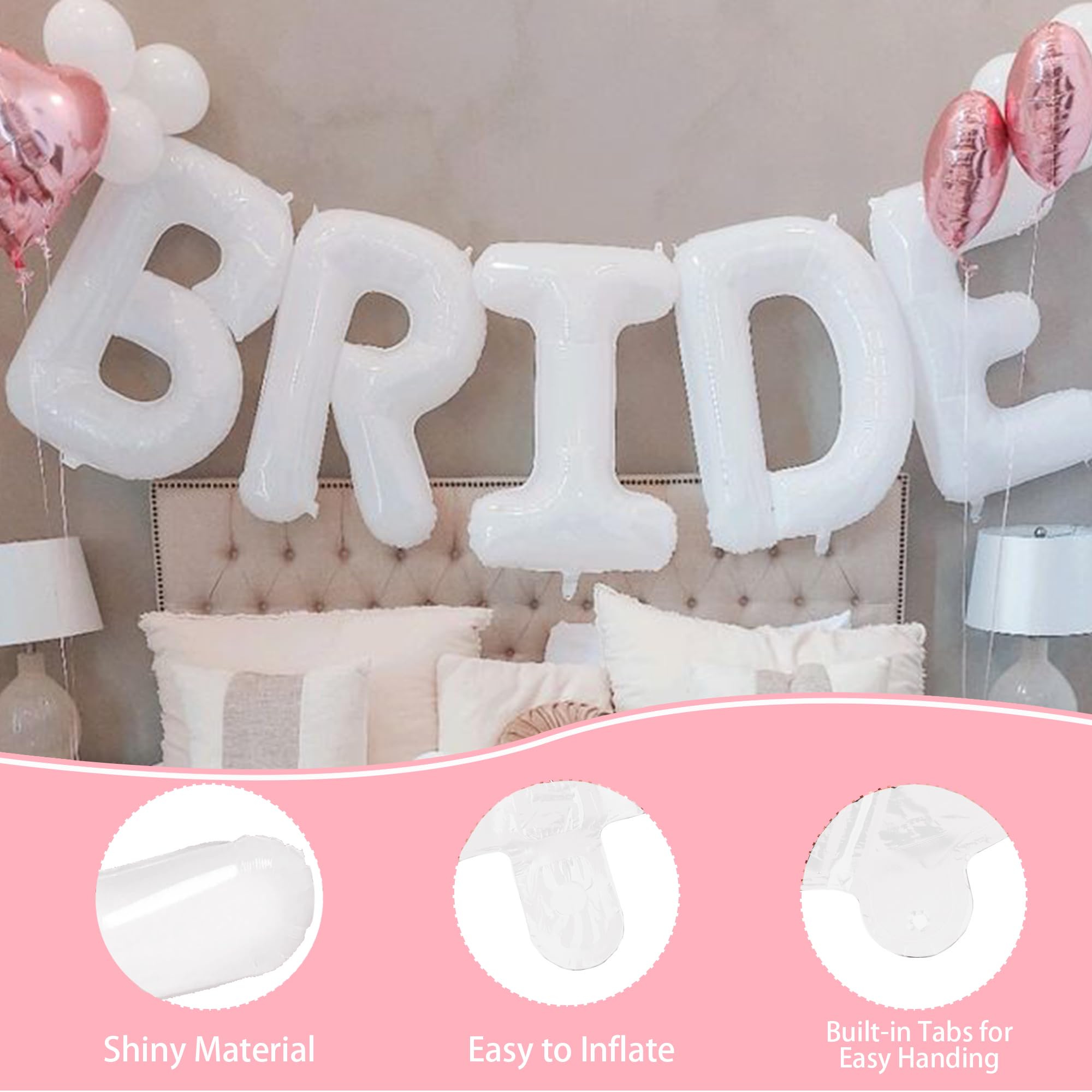 Sparkling Bride Balloon: 40-inch white letter balloon with an inflating straw and string. Elevate your party with this chic and glamorous decoration, adding style and elegance effortlessly