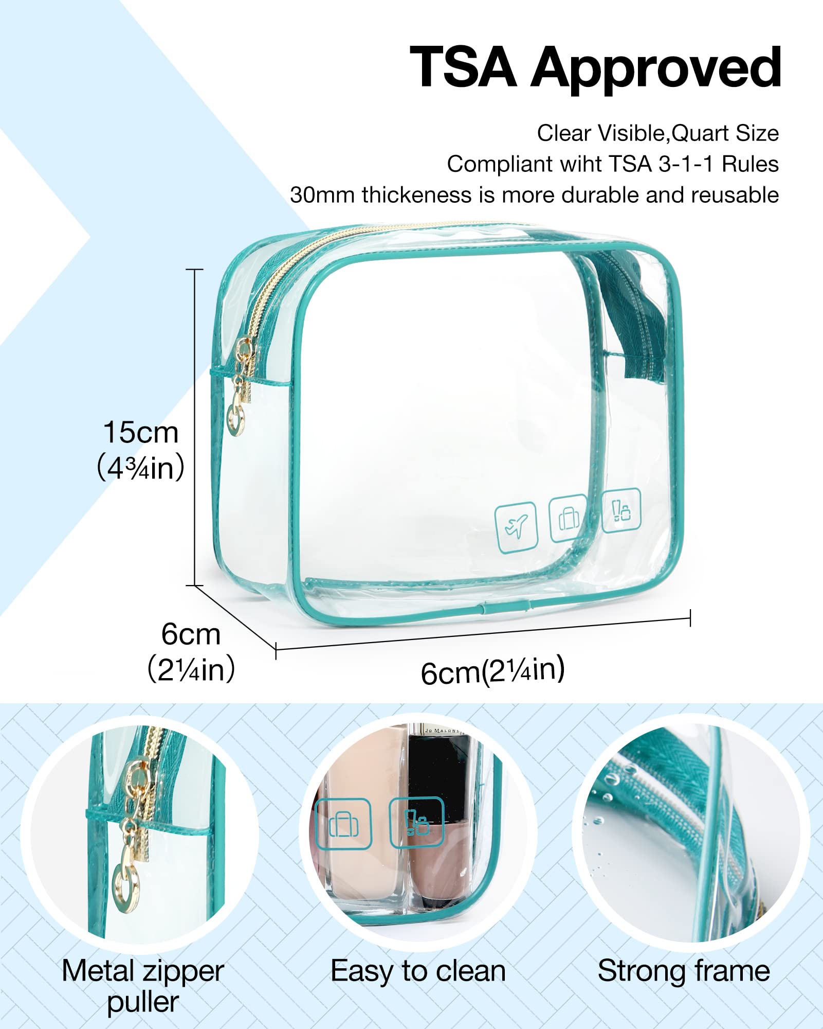 𝐓𝐫𝐚𝐯𝐞𝐥 𝐅𝐫𝐢𝐞𝐧𝐝𝐥𝐲: Separate TSA-approved transparent toiletry bag strictly follows 3-1-1 regulations. Easy and quick to pass through airport security