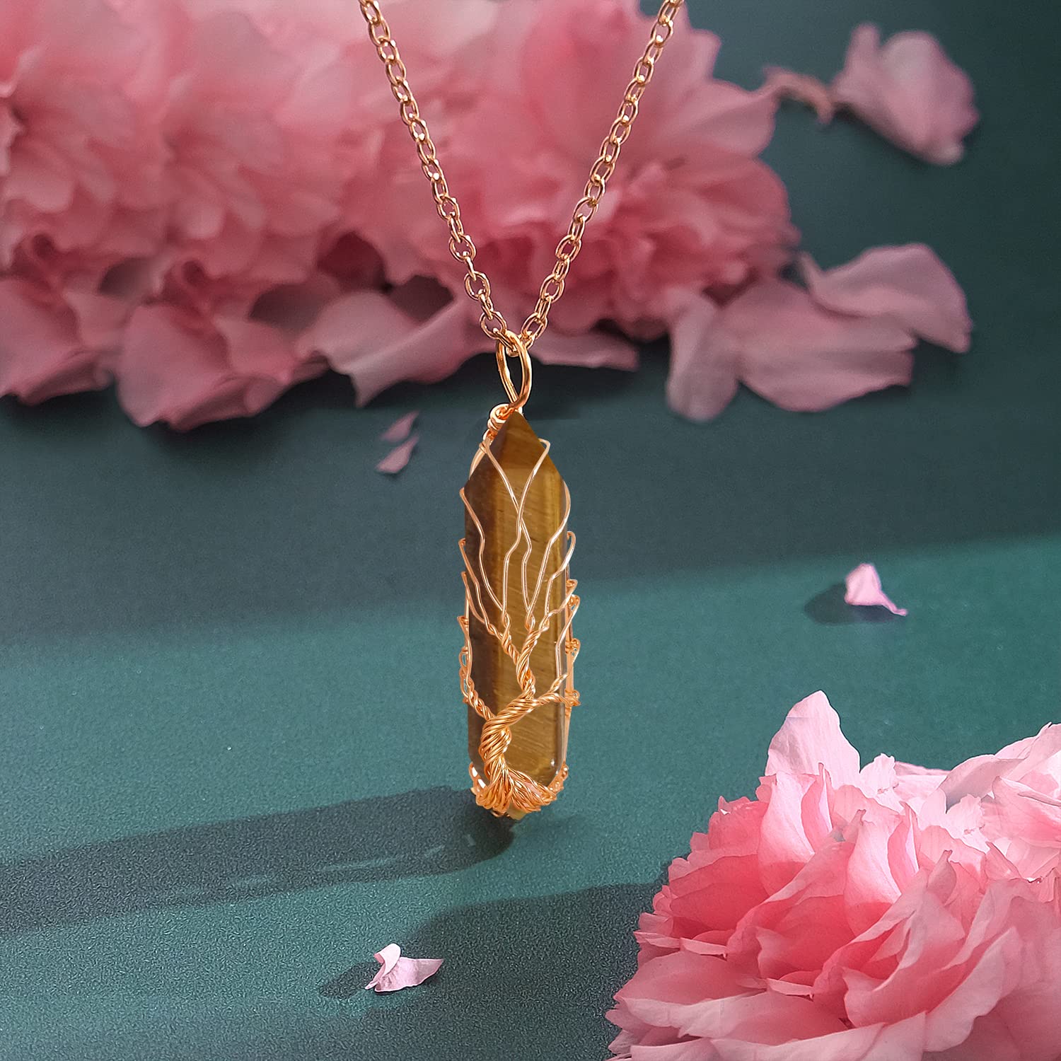 Description Healing Crystal Necklace Tree of Life Wire Wrapped Teardrop Natural Stone Pendant Necklace Reiki Spiritual Quartz Gemstone Jewelry for Women Men Specification: Necklace Chain Size: 19.7 inch (adjustable). Crystal Point Pendant Size: 1.89*0.98 inch. Weight: about 0.25oz. Material: natural crystal stone & Gold Wire Alloy. Protect your crystal necklace: 1. Please take it off when take a bath, wash your hair, swim in the pool or sea, soak in the hot springs, do housework, the chemicals in shampoo, the salt water in sea, the chlorine water in the pool, the detergent used in household chores will have a bad effect on the crystal stone necklace. 2. The crystal necklaces that is not worn normally should be stored in a special storage box or jewelry sealed bag for storage and storage, and should not be placed in a wet or exposed place for a long time. If you have any questions about the crystal necklace you bought. You can ask us questions, "VIBILIA" will provide you with professional answers within 24 hours.