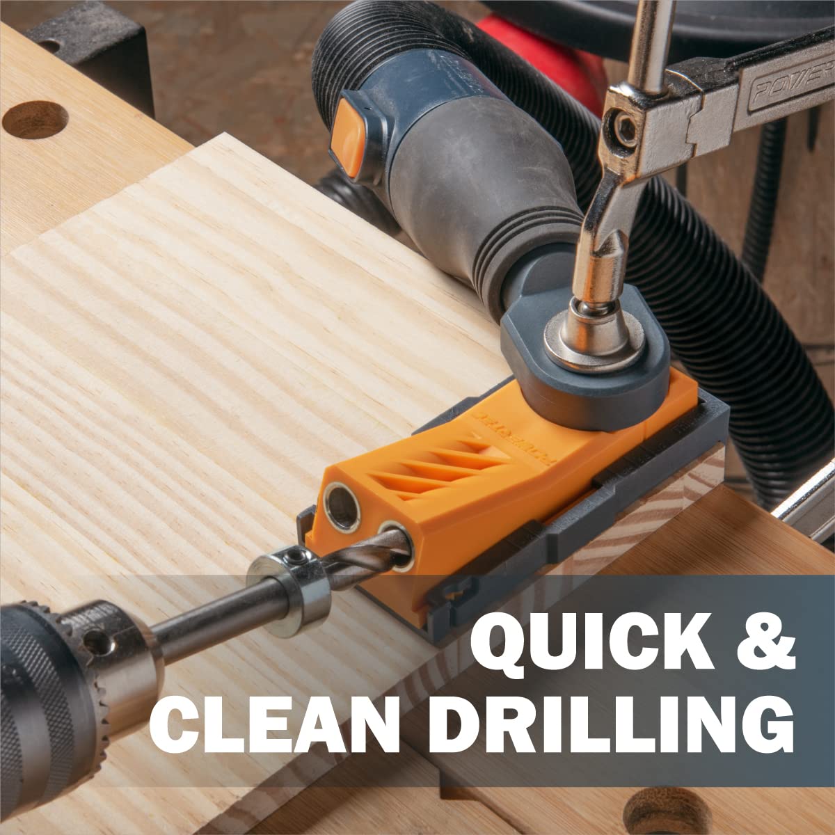 INCLUDES: Twin Pocket Hole Jig with 180 Degree Dust Collector Adapter, Driver & Drill Bits, Stop Collar - Wood - Self-Tapping Screw Combo, Hex Key and Portable Carry Case