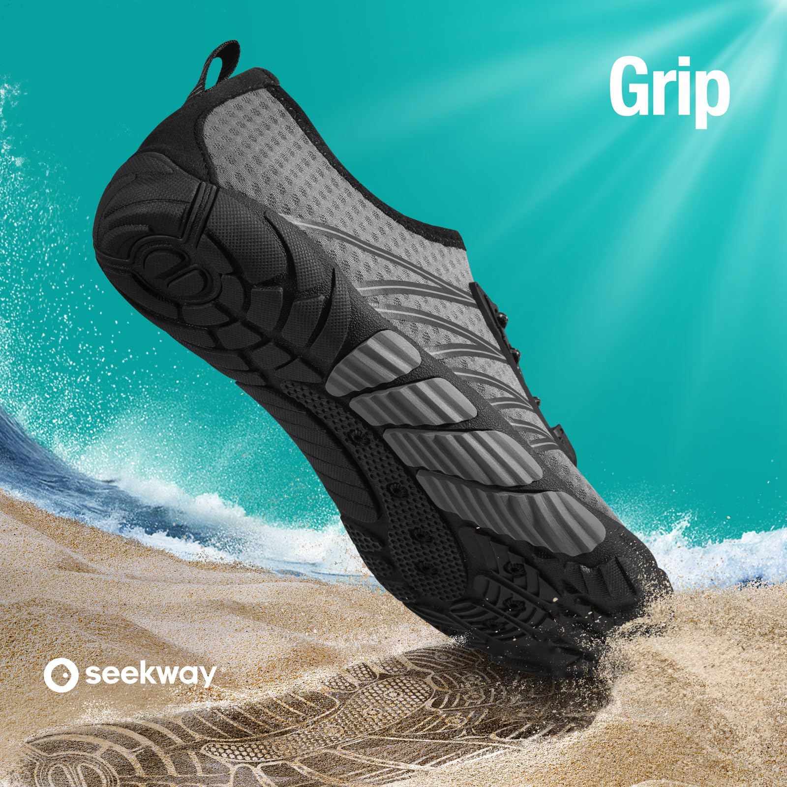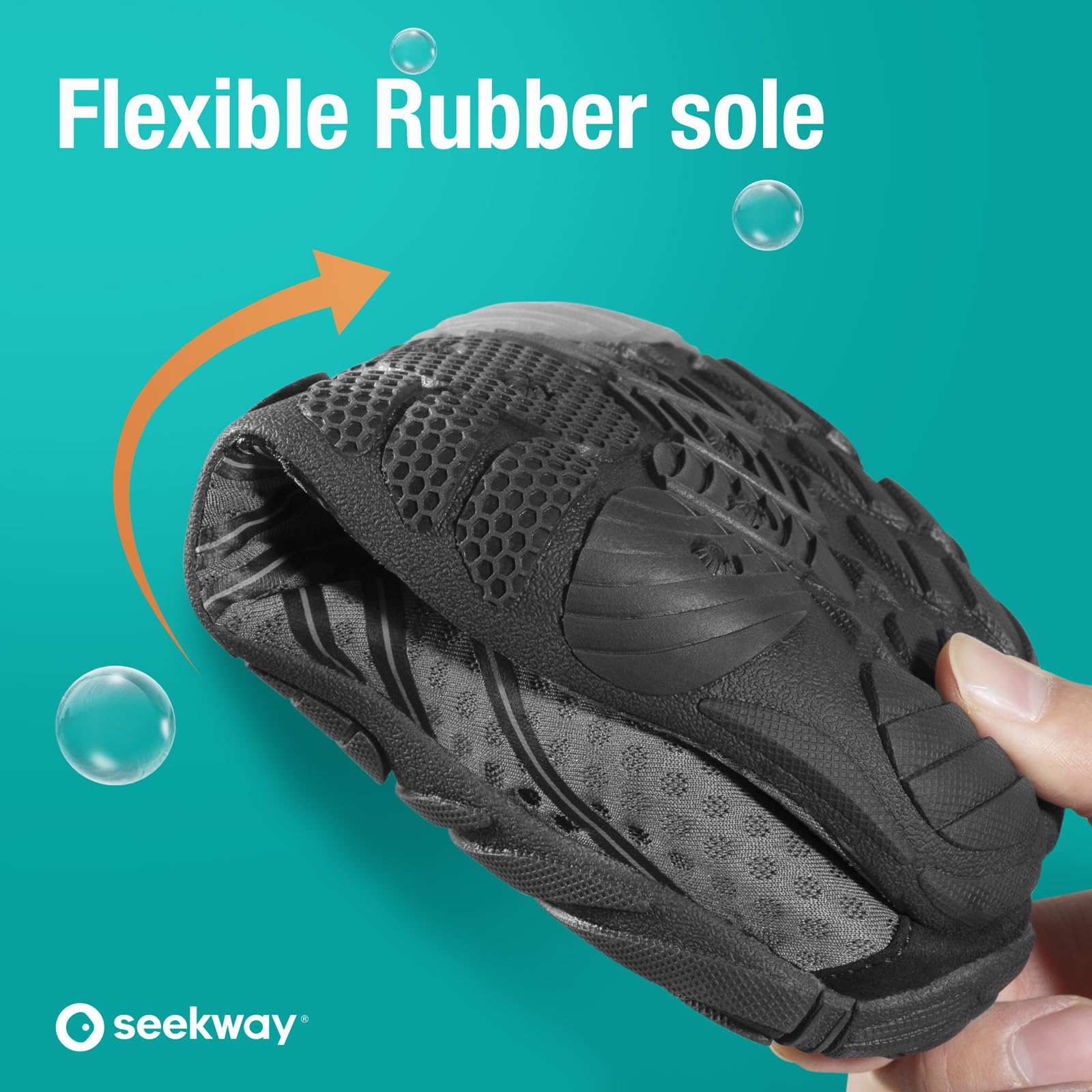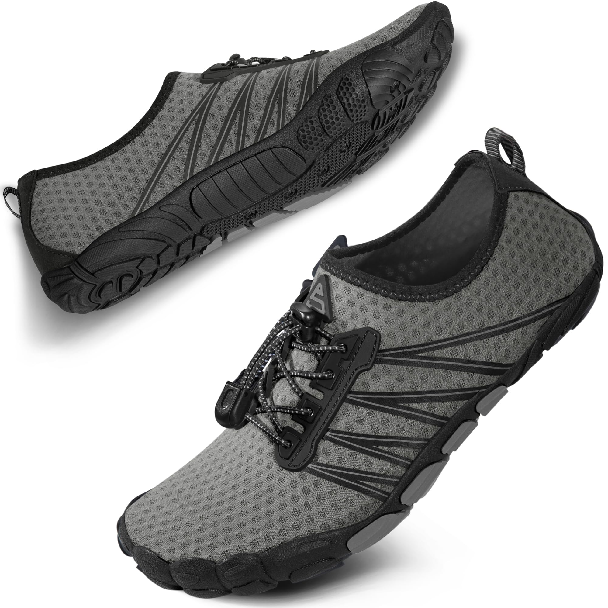 All-round Protection:Thick rubber soles and a toe cap keep your feet completely protected from sharp objects and provide great cushioning. The 3D non-slip treads provide exceptional grip even in slippery conditions. This makes it a great choice for outdoor sports.