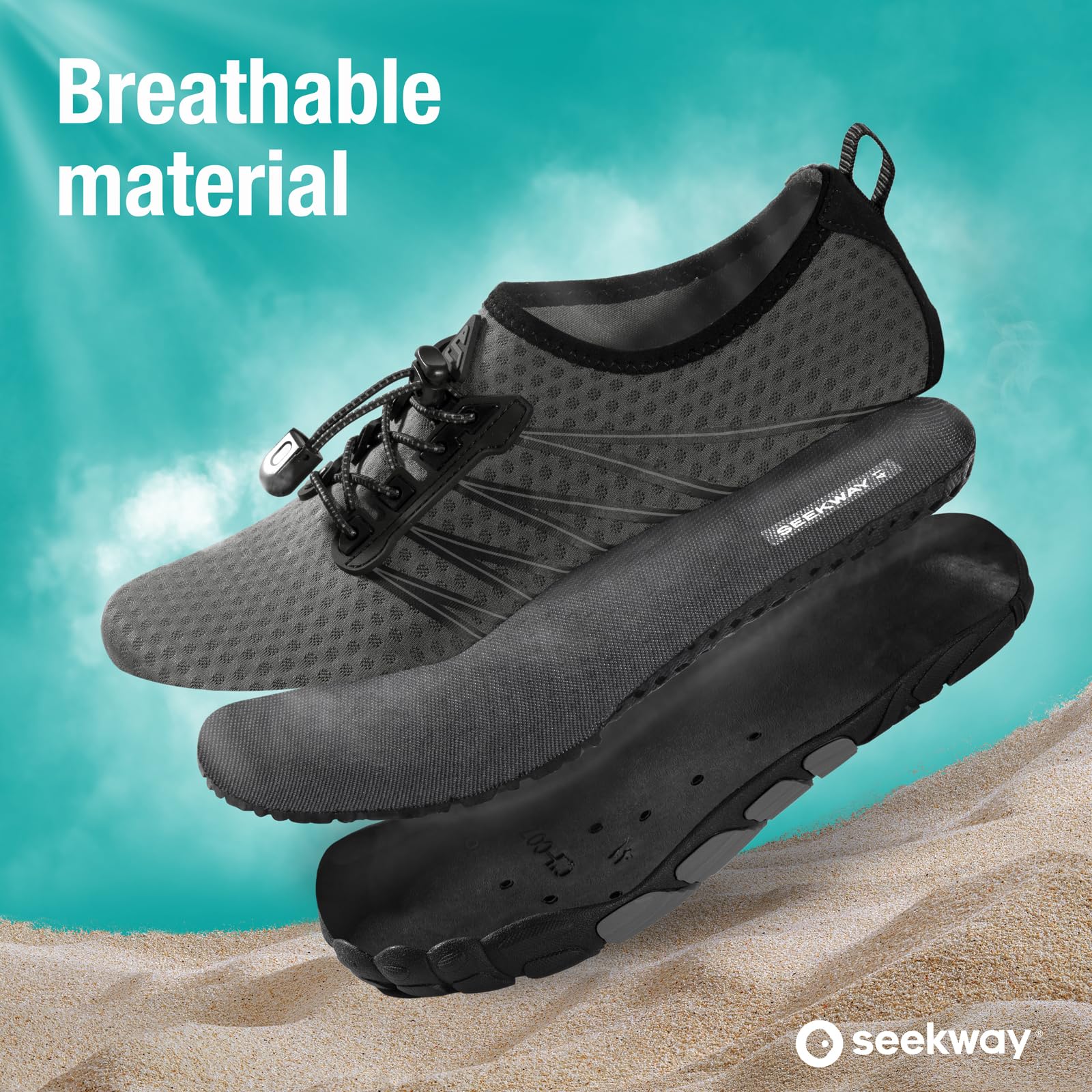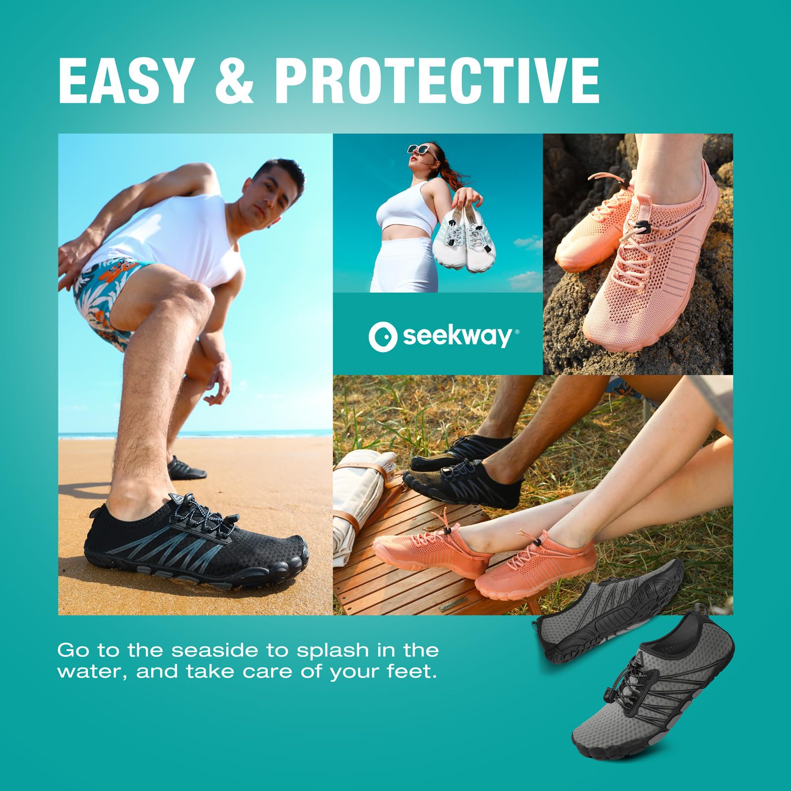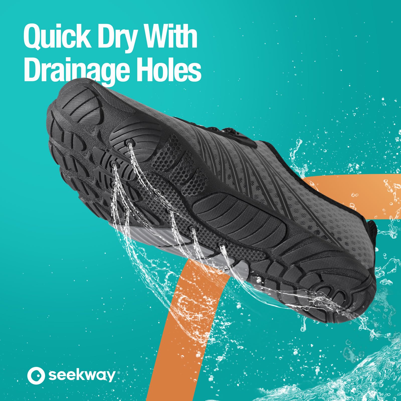 All-round Protection:Thick rubber soles and a toe cap keep your feet completely protected from sharp objects and provide great cushioning. The 3D non-slip treads provide exceptional grip even in slippery conditions. This makes it a great choice for outdoor sports.