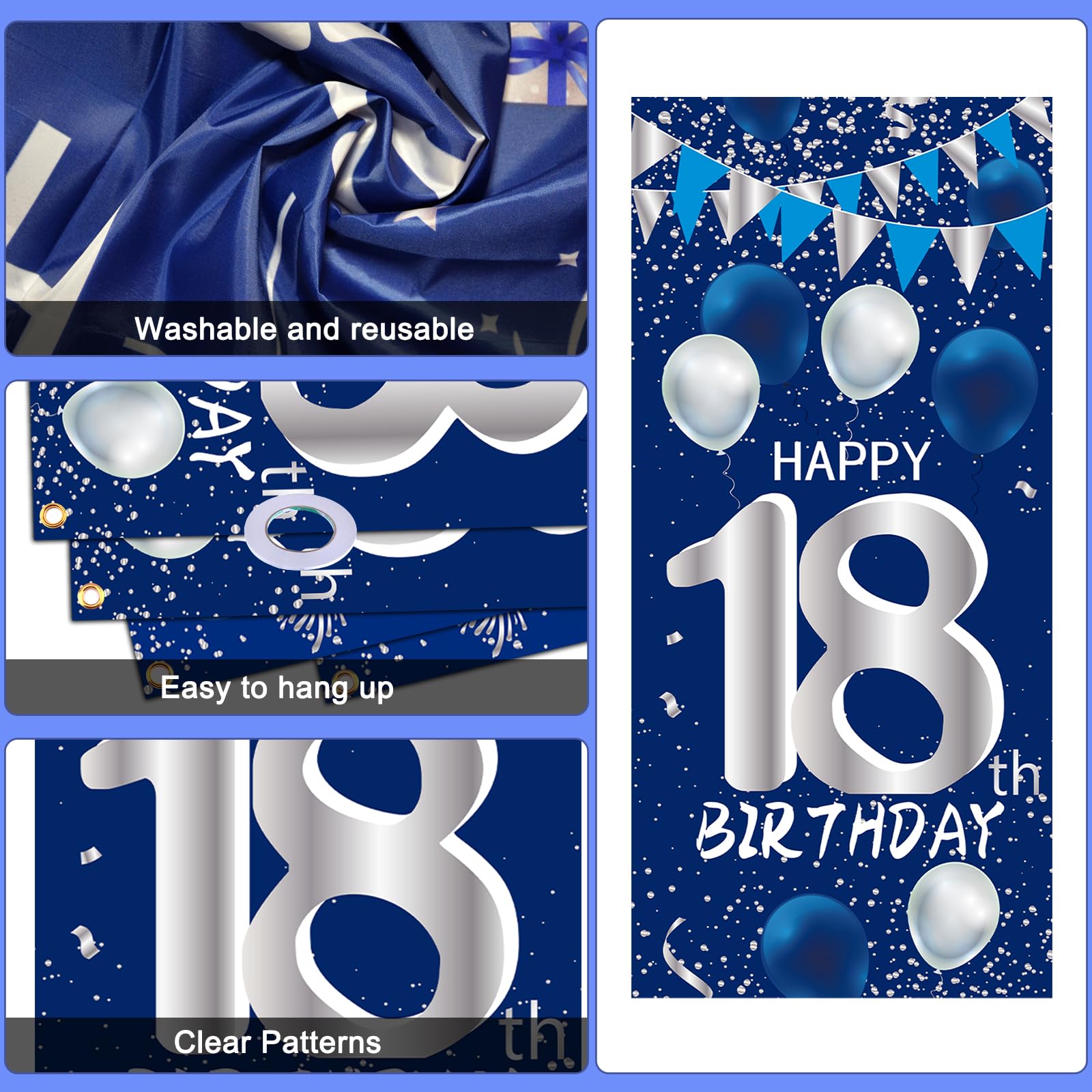 💙【Exclusive 18th Birthday Decorations】The happy 18th birthday decorations party kit for boys men uses blue and silver as the birthday theme colors, easy to setup a stylish, sparkling and romantic birthday scene; The large "Happy 18th Birthday" sign on the birthday door banner is instantly eye-catching and impressive; Your 18-year-old son, daughter, nephew, friends, brother,or your grandson will really enjoy it!
