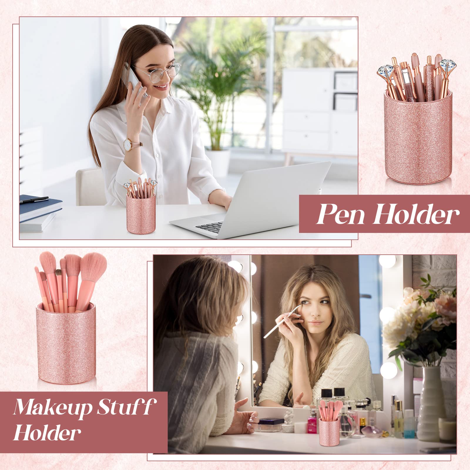 Office Accessories Set: the package contains 1 piece of bling rose gold pen holder for desk PU leather and 8 pieces of rose gold pens in 4 designs, 2 pieces for each design, put them together on your desk to make your desk look stylish and attractive