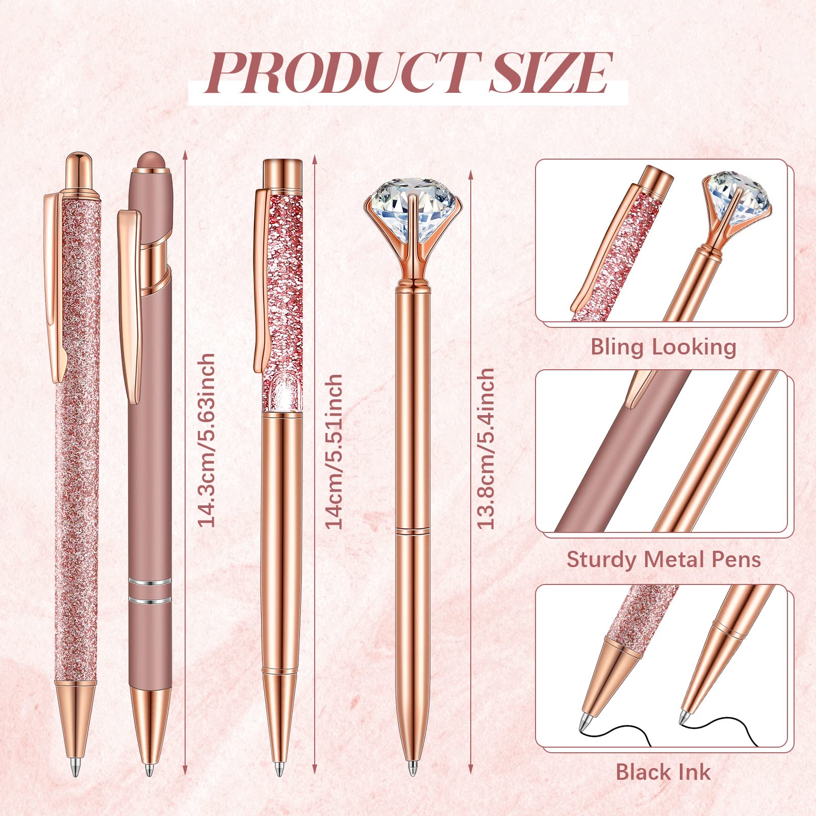 Long Lasting Material: the glitter cute pen holder with shiny elements is made of PU leather, smooth and comfortable to touch; These bling ballpoint pens are made of quality metal material, which are sturdy and reliable, no peculiar odor, designed in bright colors, prone to fading, so can rest assured to use for a long time