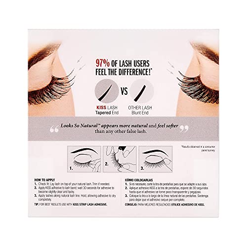 Lashes in a Flash: Easy to apply in minutes for a natural look and ultimate comfort; Cruelty-free, contact lens friendly, and reusable up to 10 times with special care; so comfortable you'll forget you're wearing them; KISS lash glue sold separately