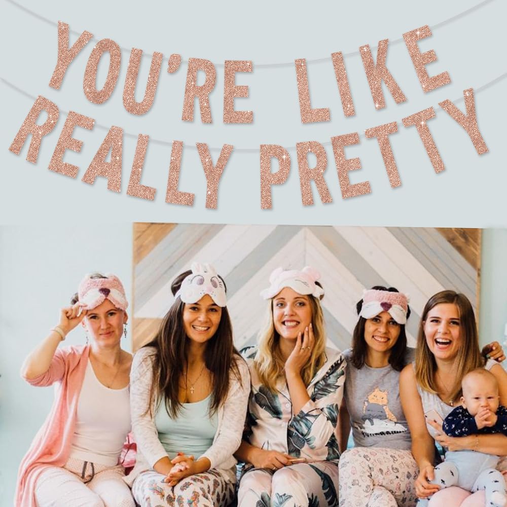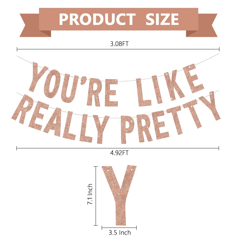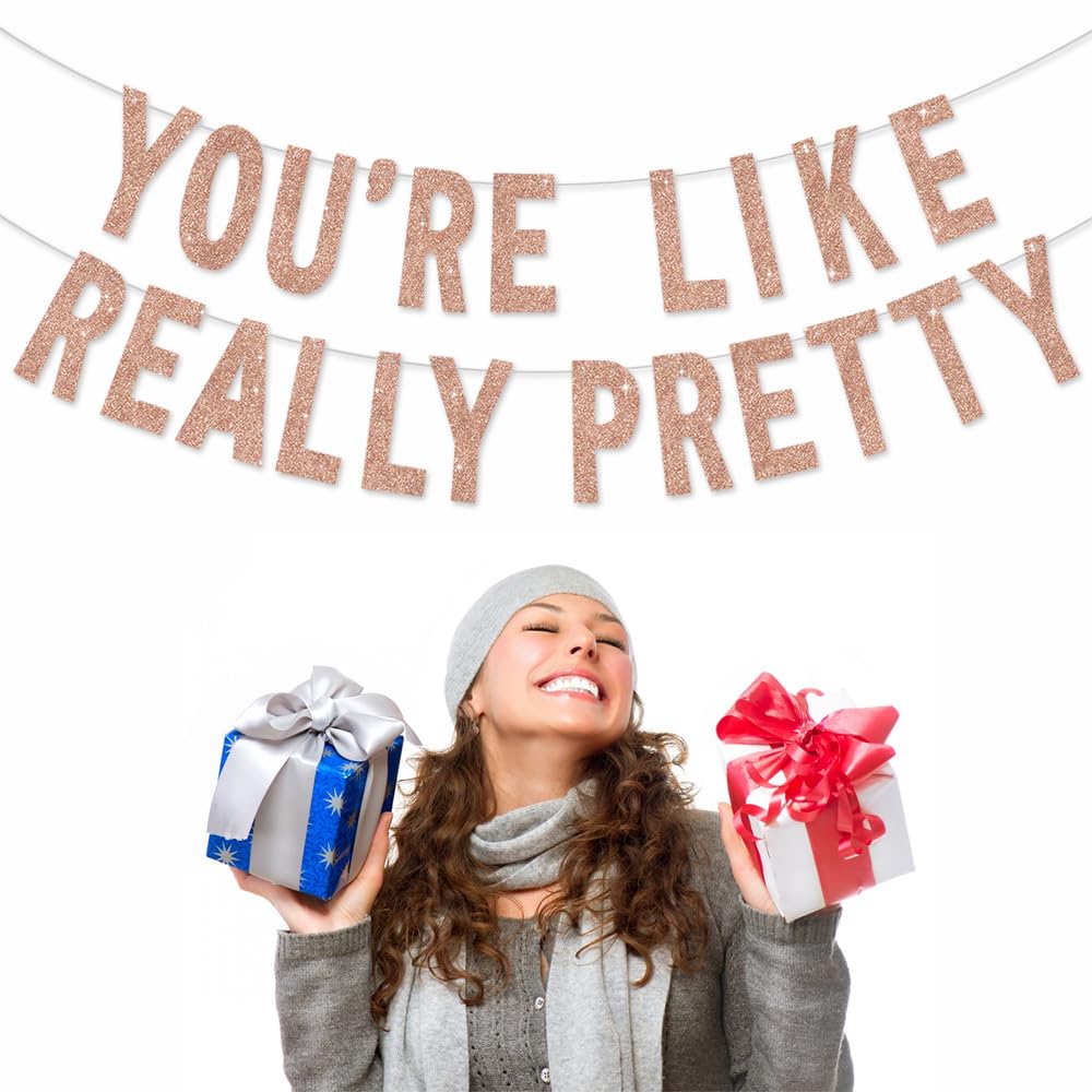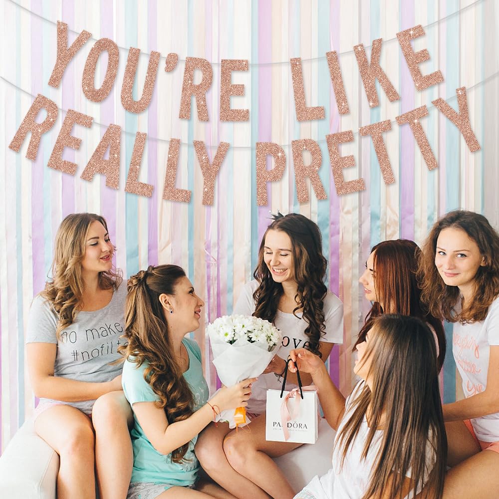 BEISHIDA Rose gold You're Like Really Pretty Glitter Banner,NO DIY, Pre-Strung Mean Girls Birthday Party Bachelorette Party Decorations,Birthday Gift for Girl