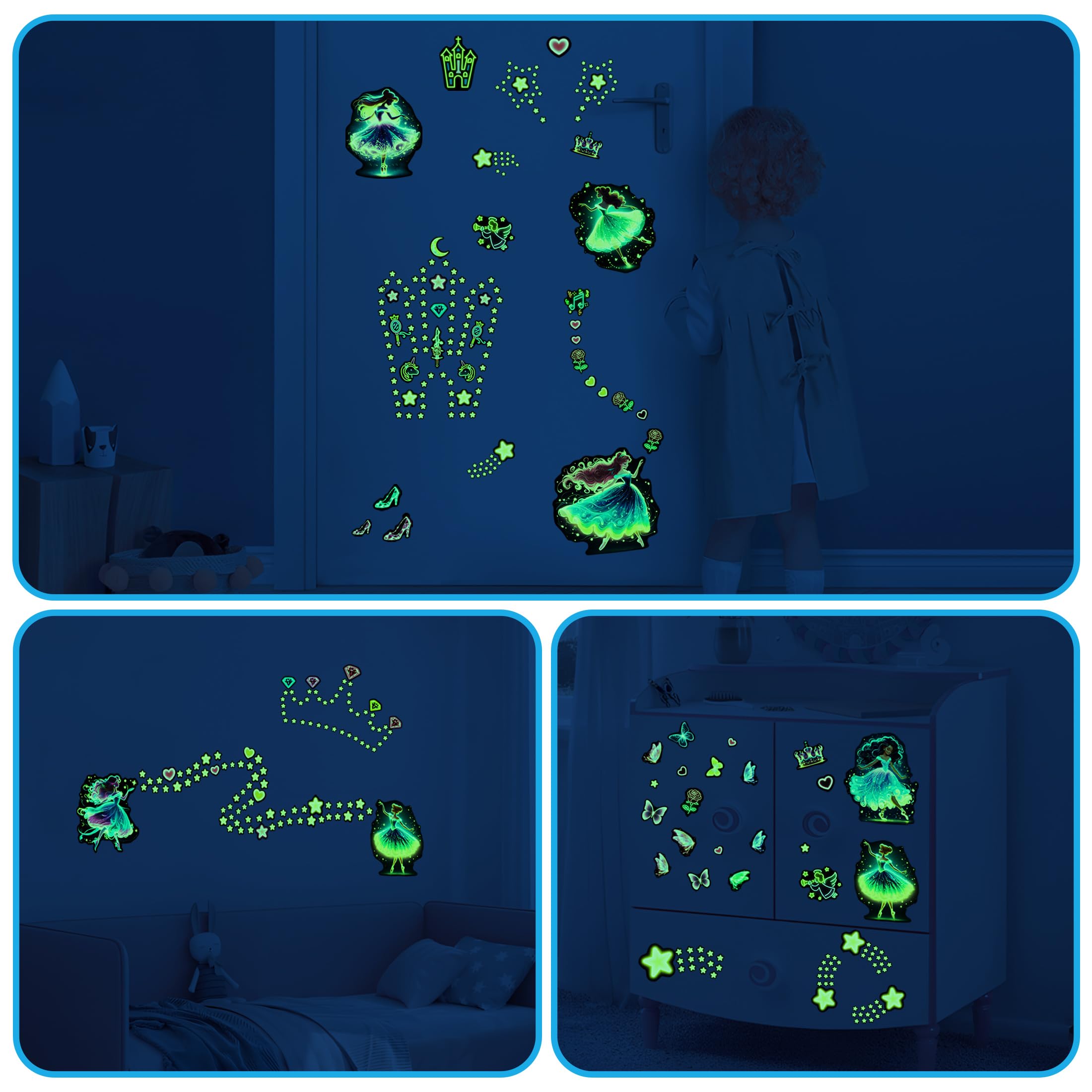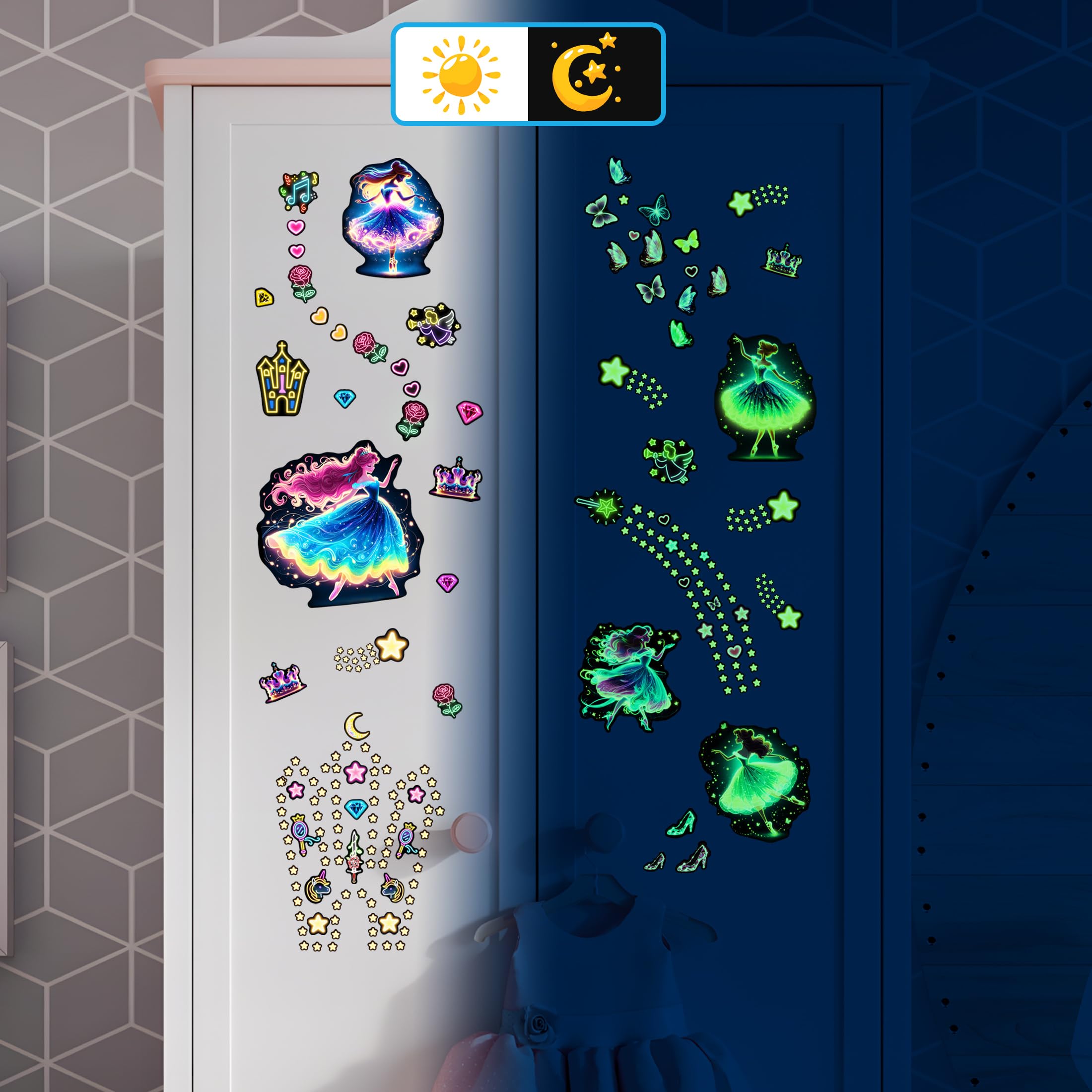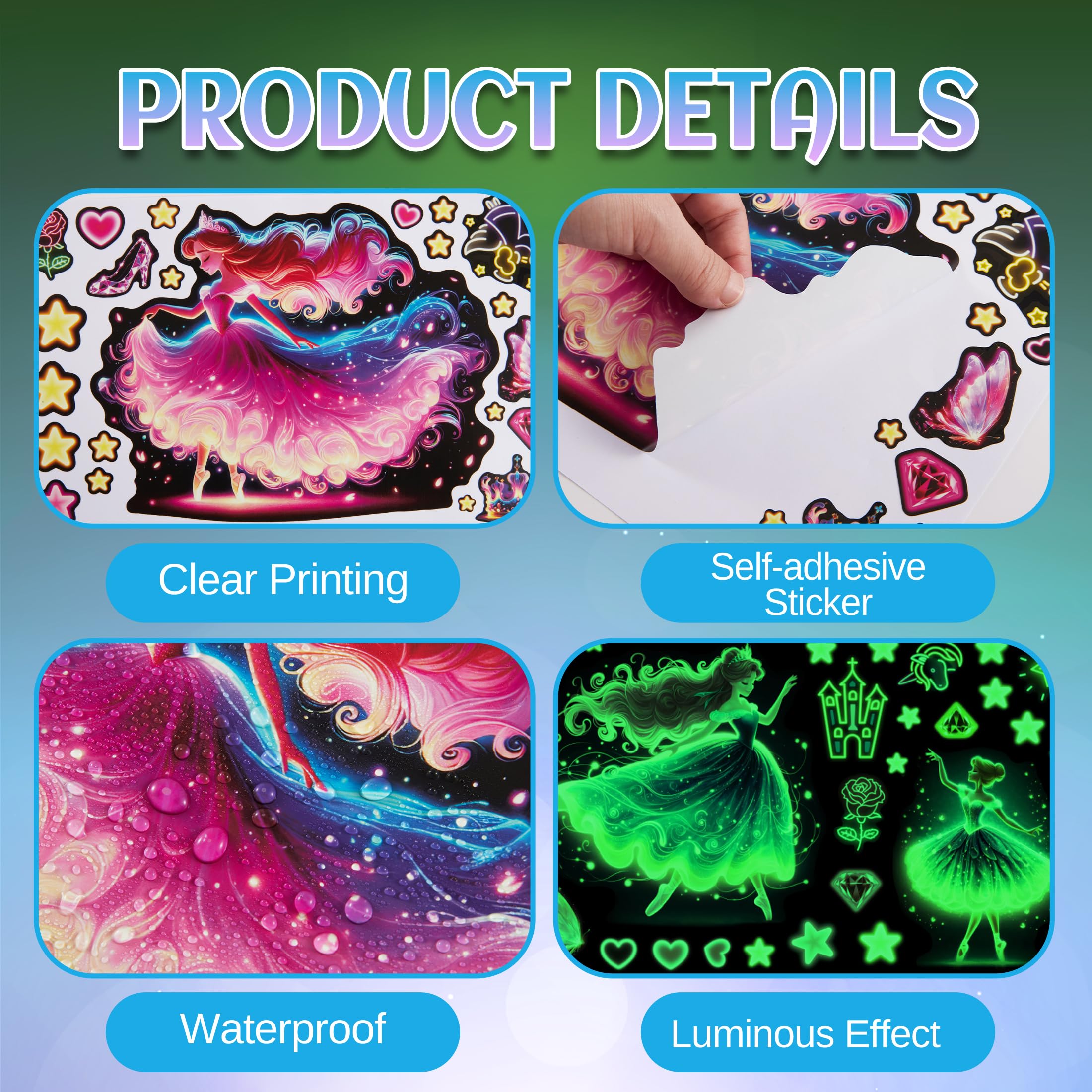 【PACKAGE CONTENTS】A set of 4 sheets, princess wall stickers of different sizes. Bright luminous wall stickers transform your room into a fantasy world and fall asleep with sweet dream.