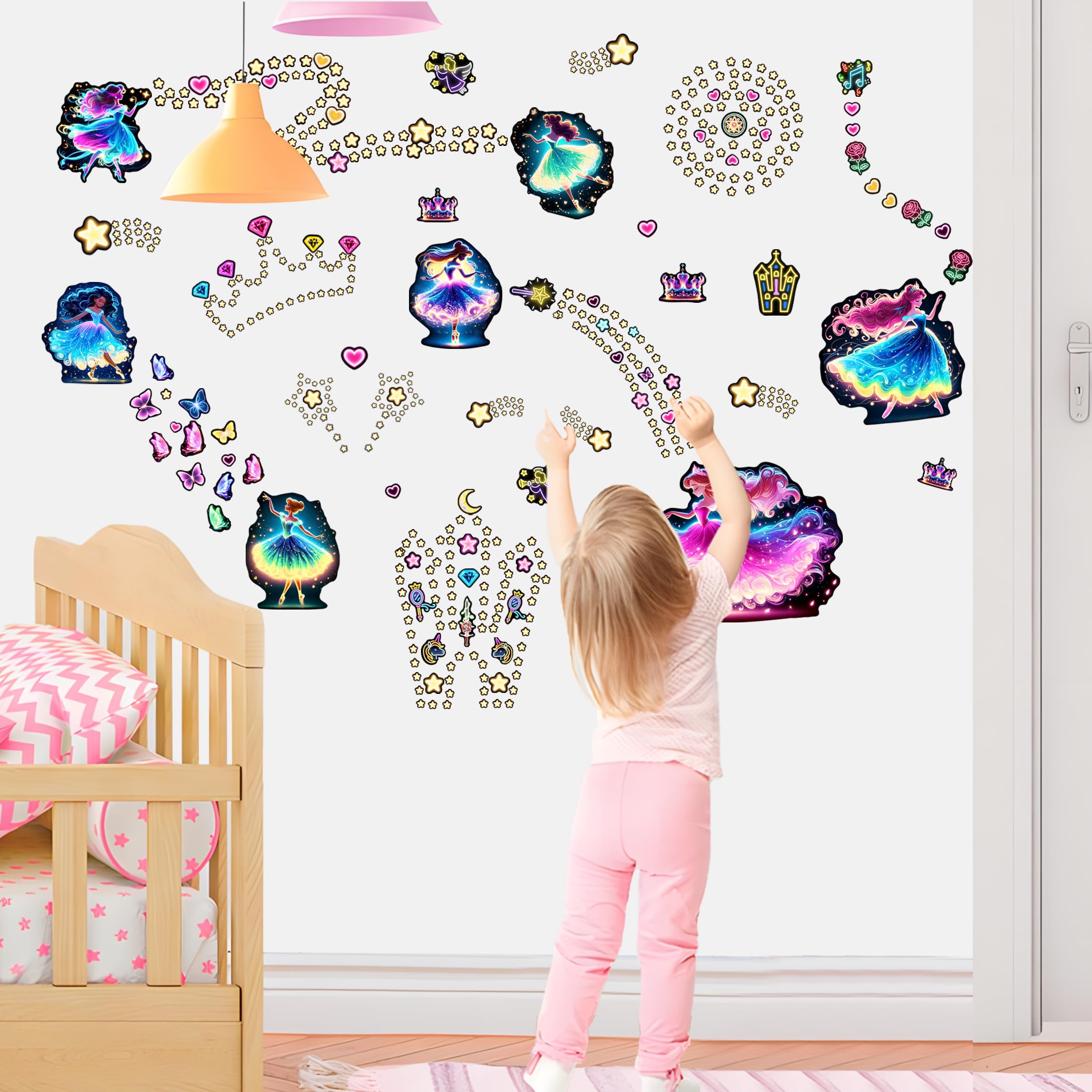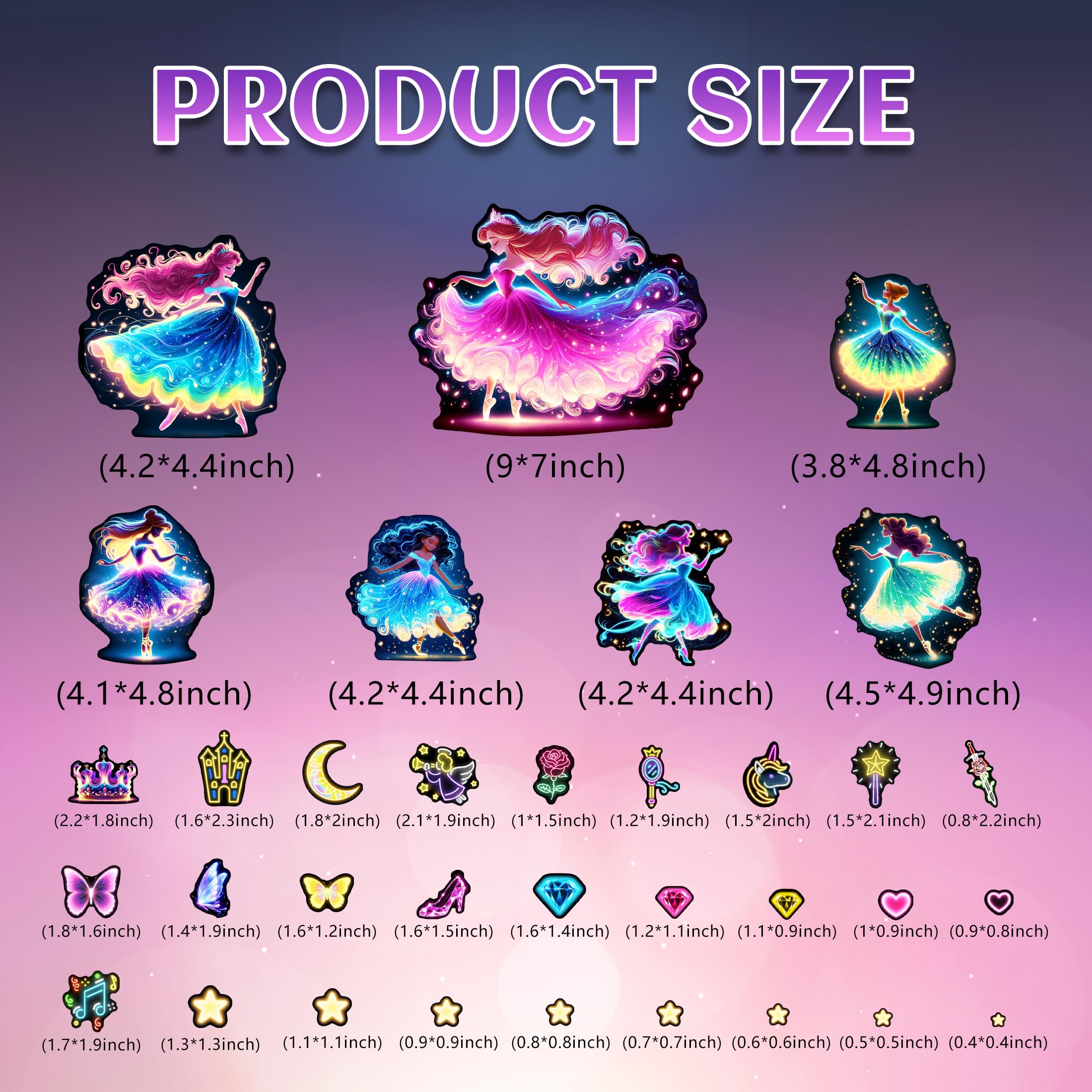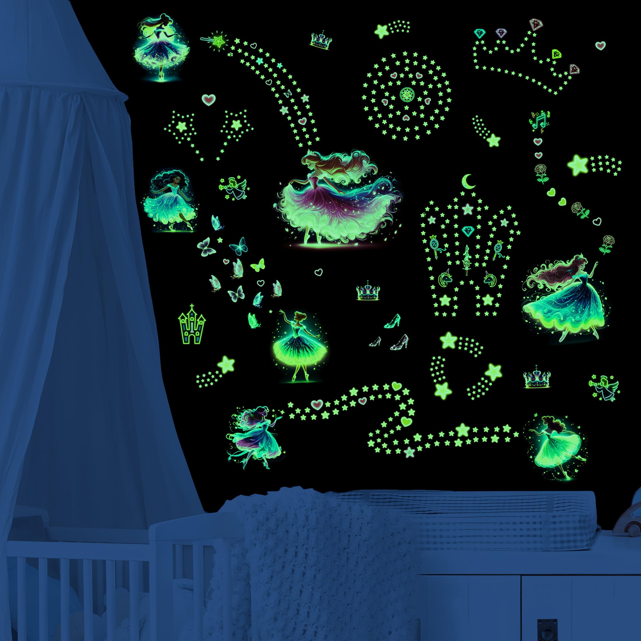 【PACKAGE CONTENTS】A set of 4 sheets, princess wall stickers of different sizes. Bright luminous wall stickers transform your room into a fantasy world and fall asleep with sweet dream.