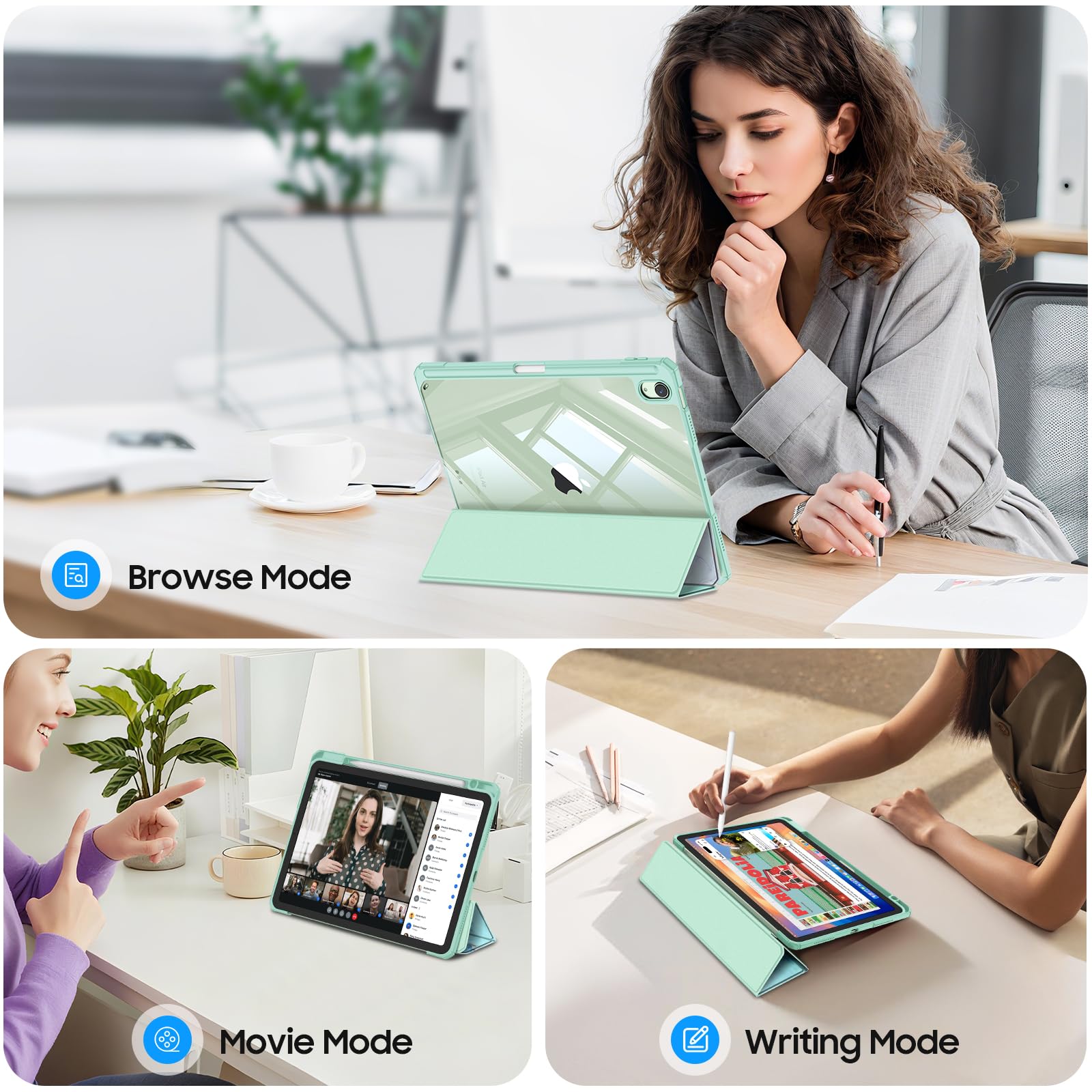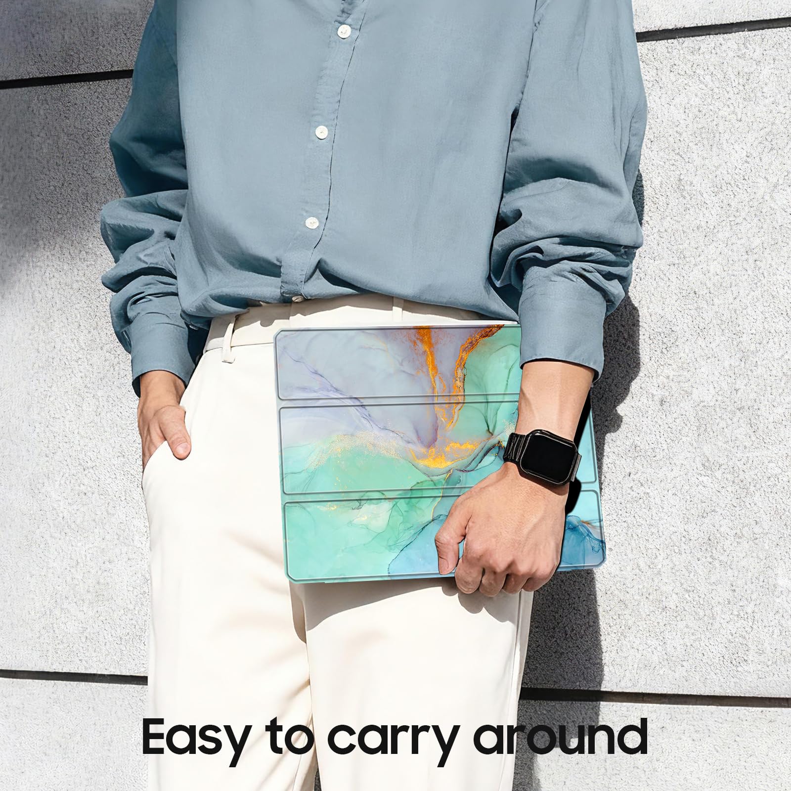 Seamlessly supports Apple Pencil Pro / Apple Pencil 2nd Gen magnetic and wireless charging when case is on. Tri-fold front cover has flip capability to transform the iPad case into a viewing stand and keyboard stand.
