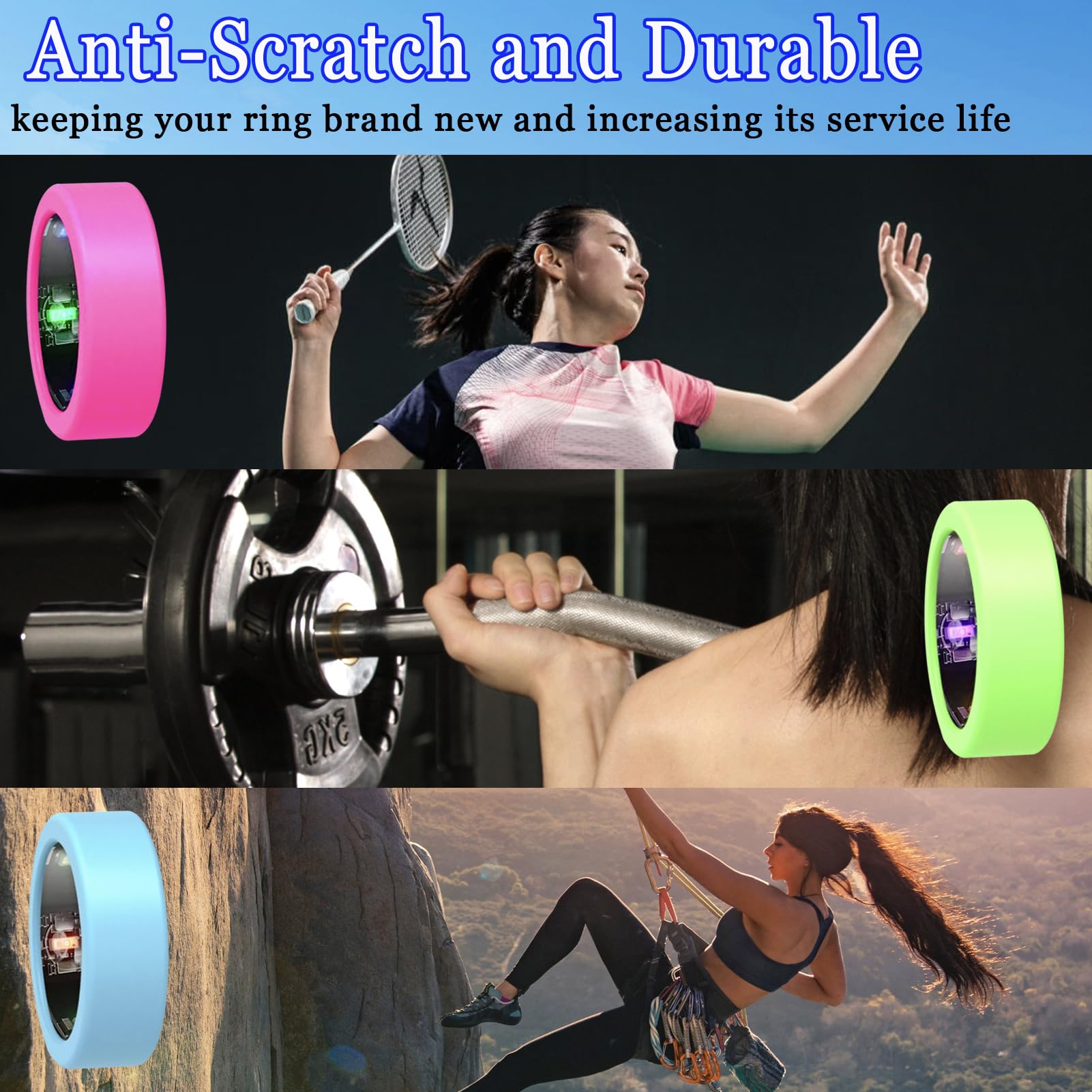 Anti-Scratch: This silicone ring protective cover for ring completely wraps around the Oura Ring Gen3,helping to minimize damage to the Oura ring during daily use or exercising