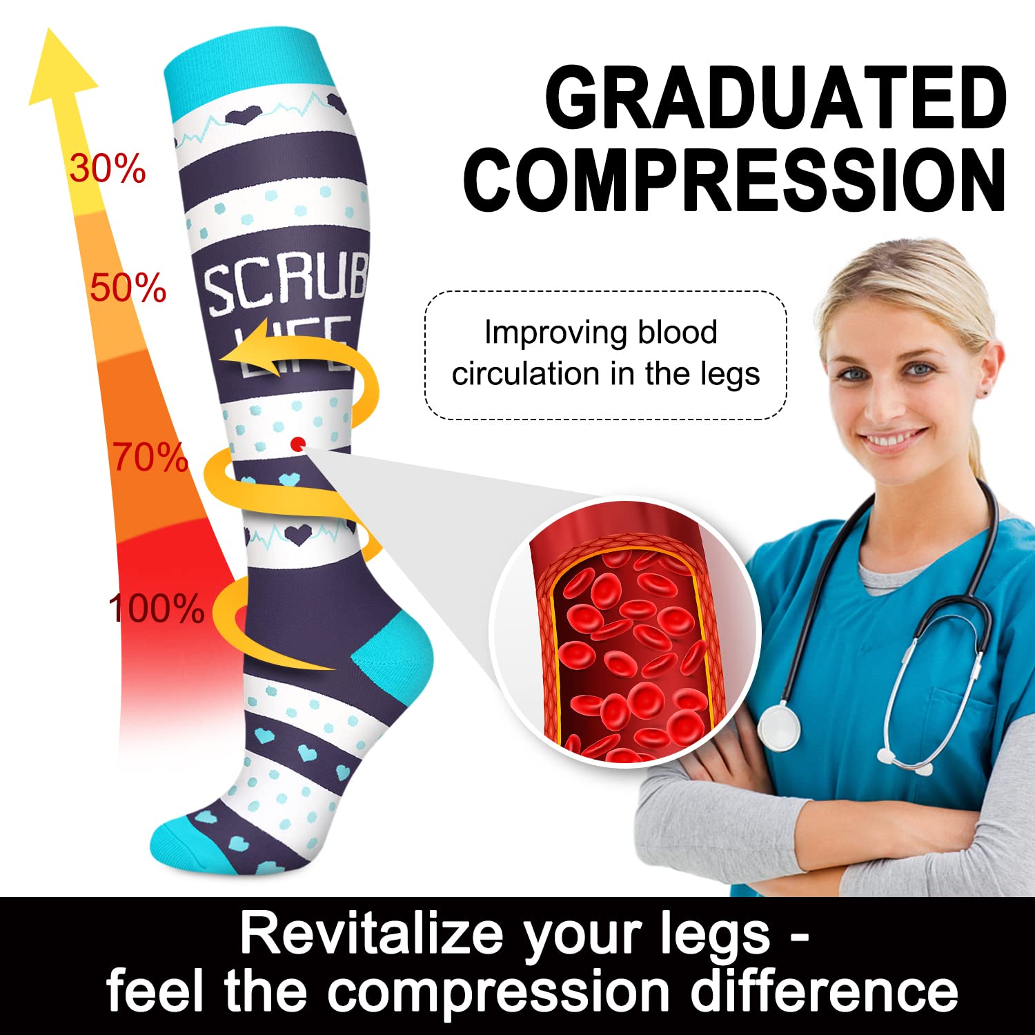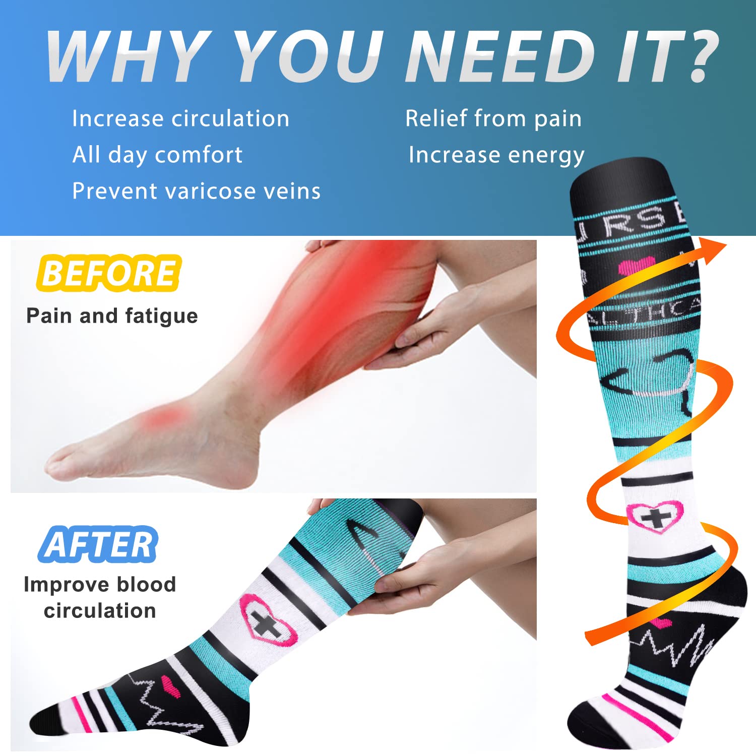 ✔️Fun and Vibrant Designs--If you love to express yourself through fashion, our colorful and fun compression socks are perfect for you. Each pair is meticulously designed with unique patterns that are sure to catch the eye. The reinforced toe and heel areas provide extra support and comfort, making these socks both durable and stylish. Suitable for all occasions, from casual wear to sports and adventure
