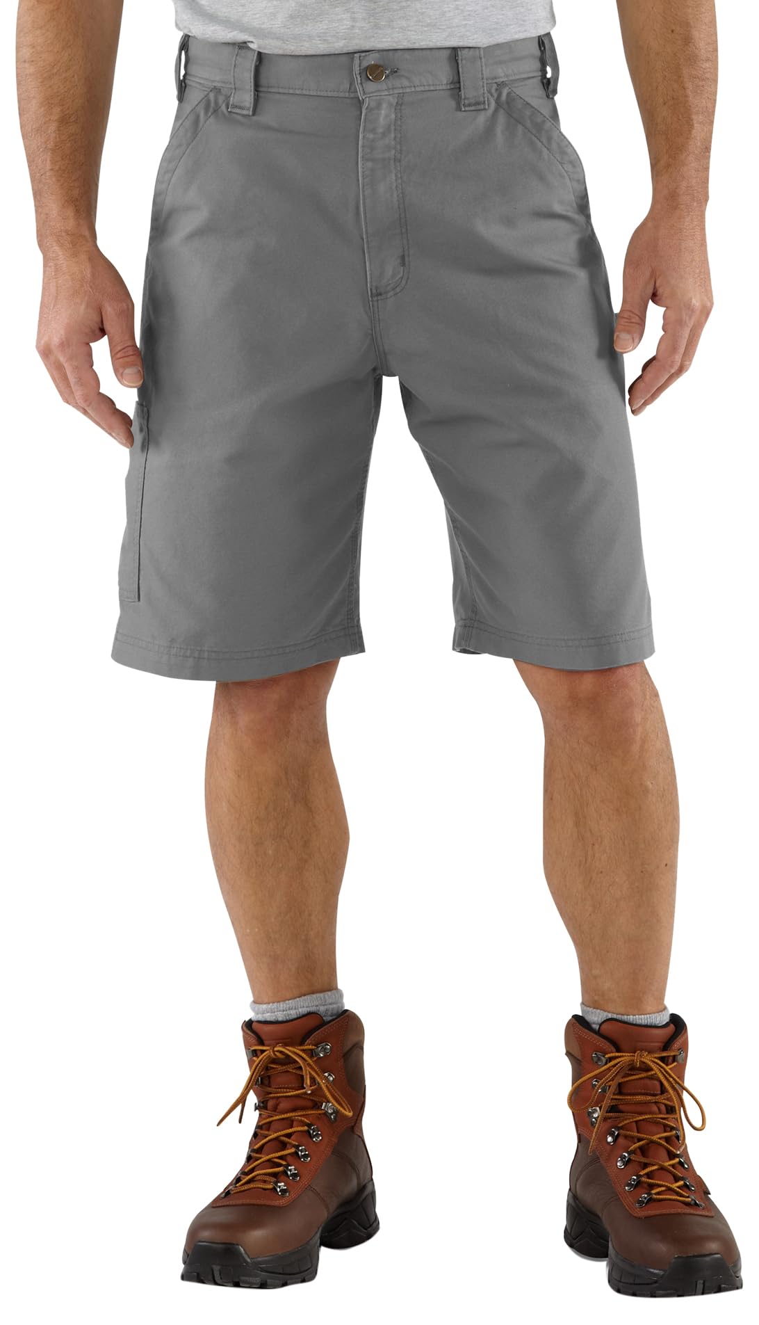Description An excellent lightweight choice, Carhartt canvas work short is made of 7.5-ounce, 100 percent cotton canvas work with a 10-inch inseam. The left leg features a hammer loop and ruler pocket, while the right leg includes a pocket for a cell phone or tools, plus a utility band. It also has extra wide belt loops. The back pockets feature reinforced seams.