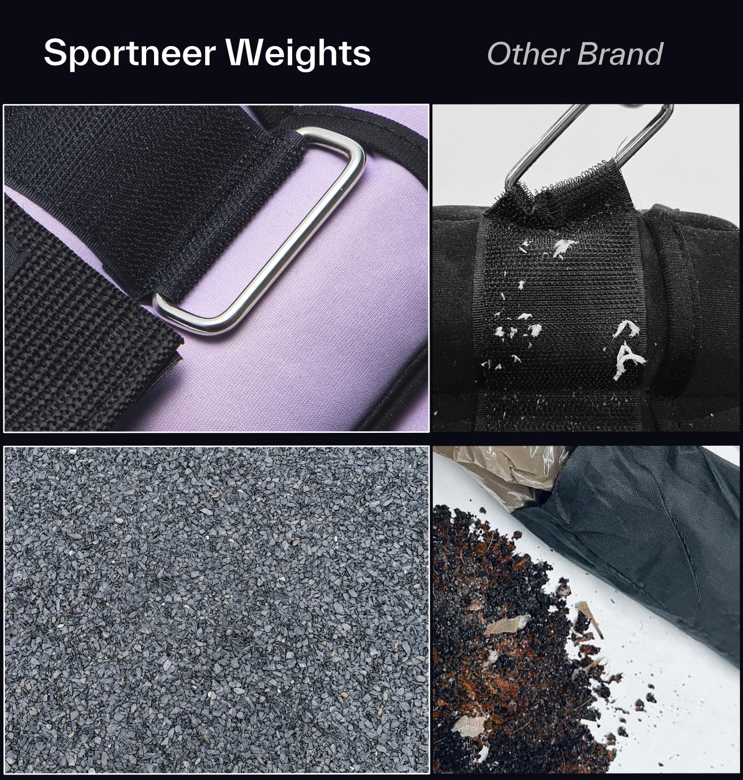 QUALITY & COMFORT: The Sportneer ankle weights were made of neoprene exterior, reinforced stitching, sturdy outer trim and moisture absorbing material inside, soft, breathable and comfortable, you could feel its softness when hold in your hands.