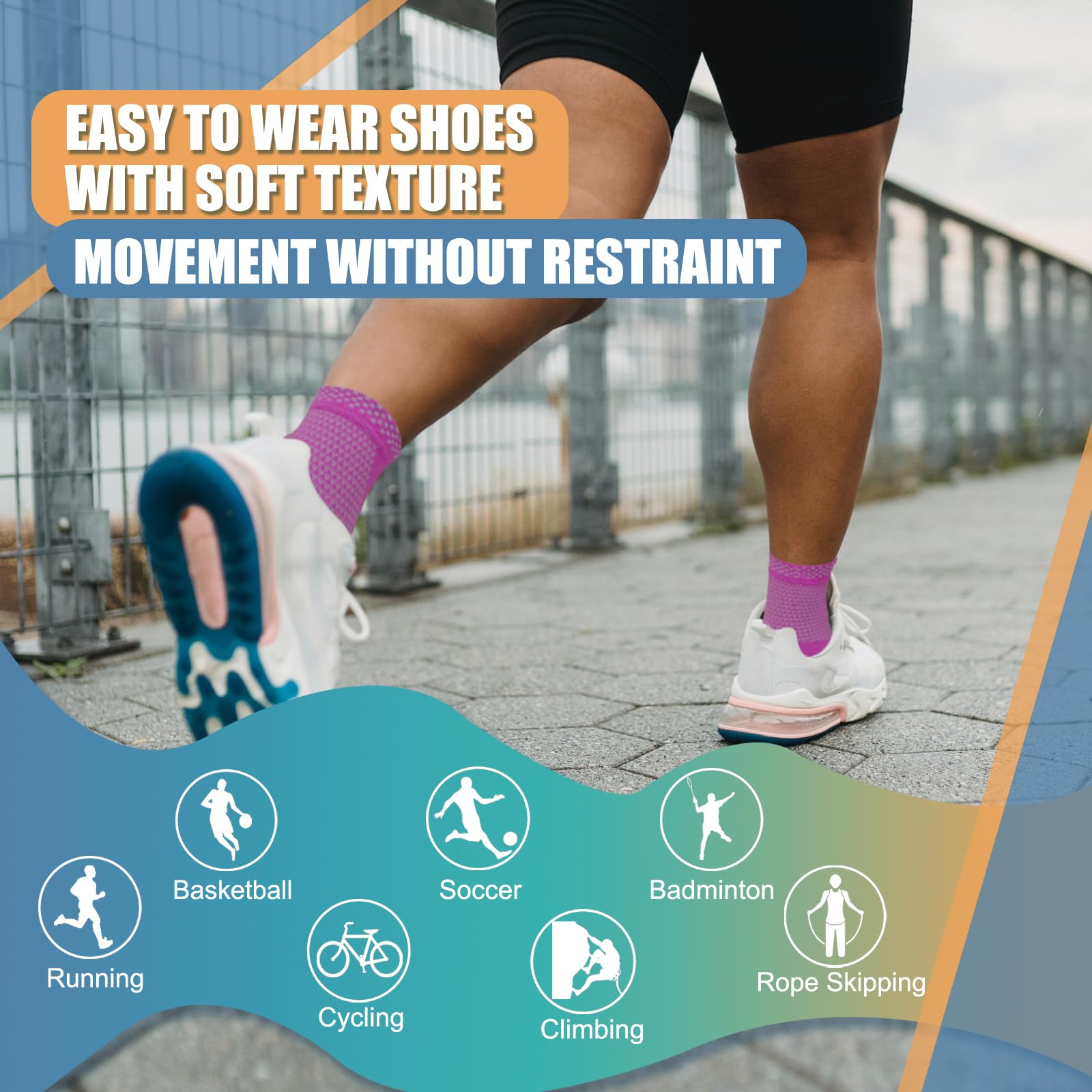 Three-dimensional knitting process: Surround graded compression design! Ankle support applies even pressure mount on the ankle joint, effectively relieves plantar fasciitis, ankle sprain, tendonitis, heel spur, arthritis, swelling, muscle fatigue, and other ankle pains. Enjoy excellent ankle support while maintaining your peak performance and the full range of leg movement