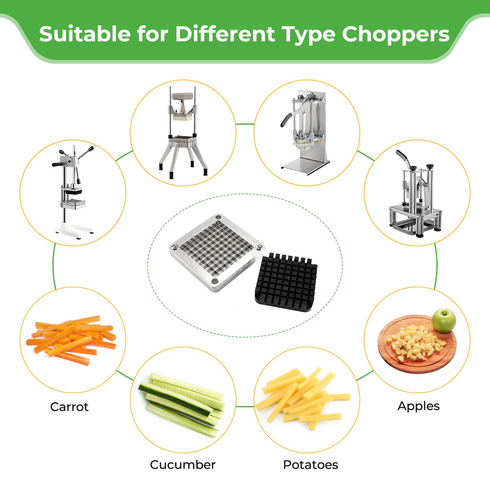 š ćWIDE APPLICATIONć- This vegetable chopper can be used to cut vegetables and fruits, including cucumbers, potatoes, onions, mushrooms, apples, pears, etc.
