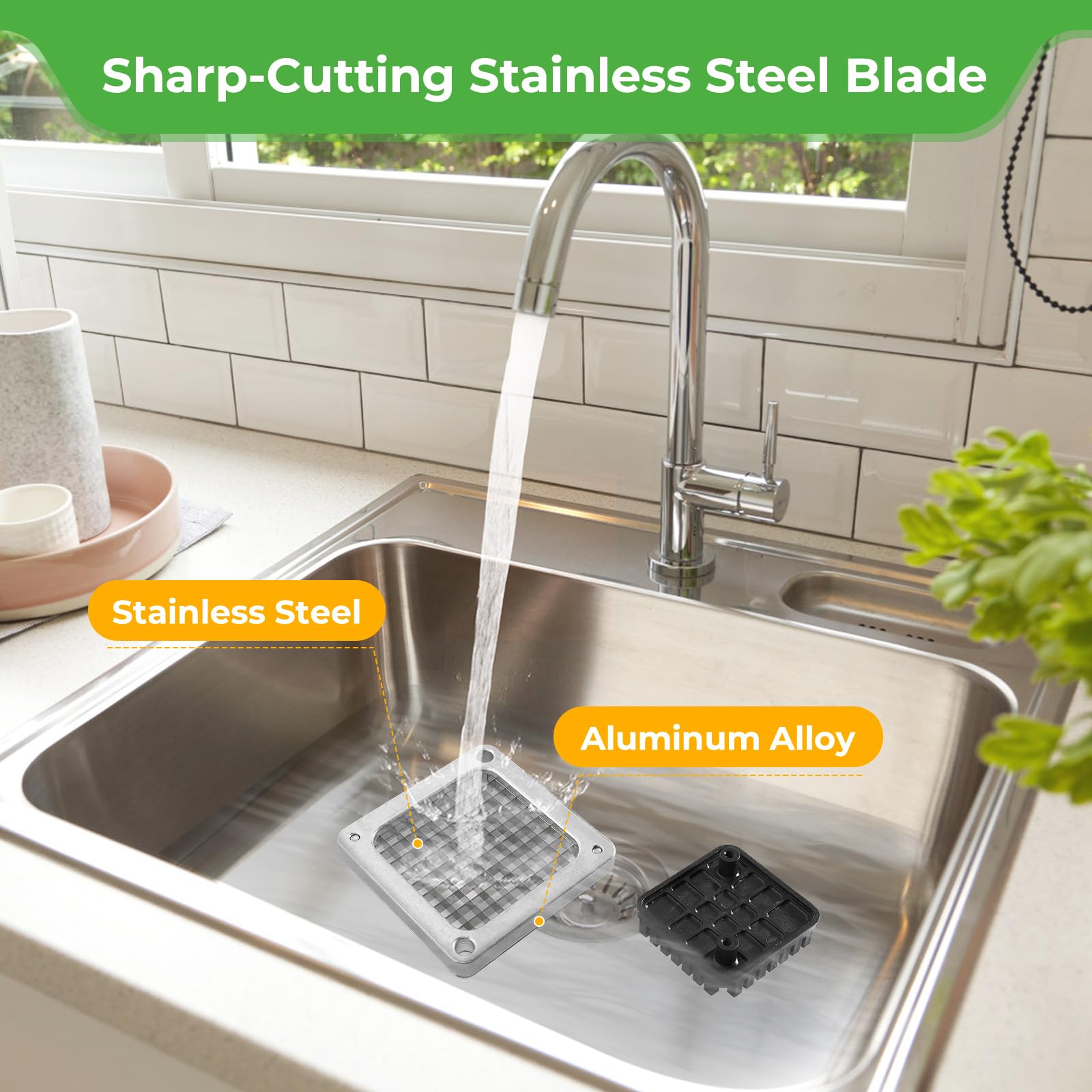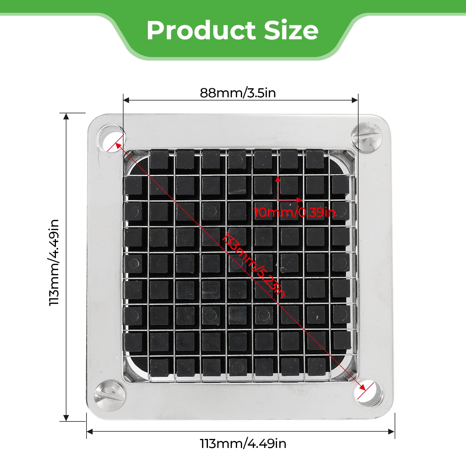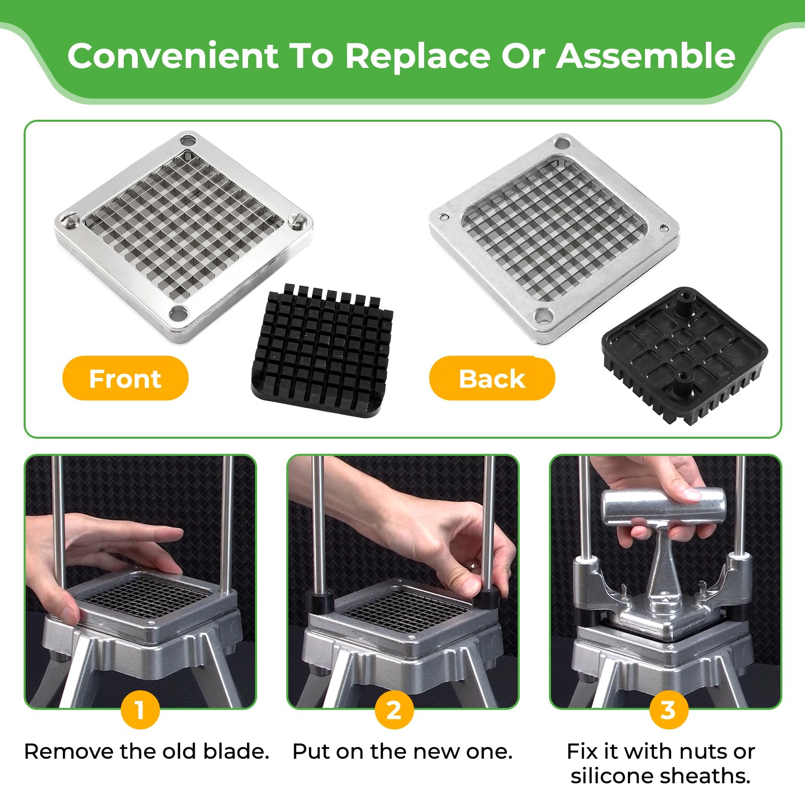 š ćEasy to Operateć vegetable chopper allowing effortless and convenient operation, Simply place the vegetables on the blade assembly and pull down the pusher block and you will get 3/8" (0.9 cm) of cut vegetables or fruit.