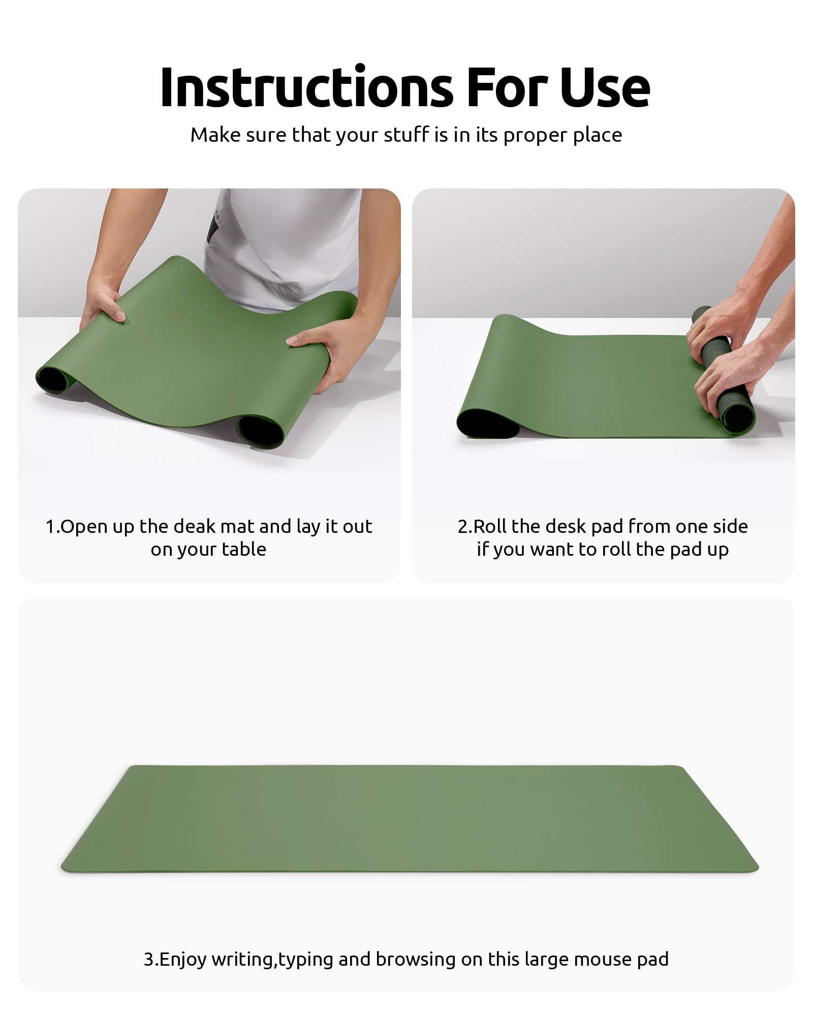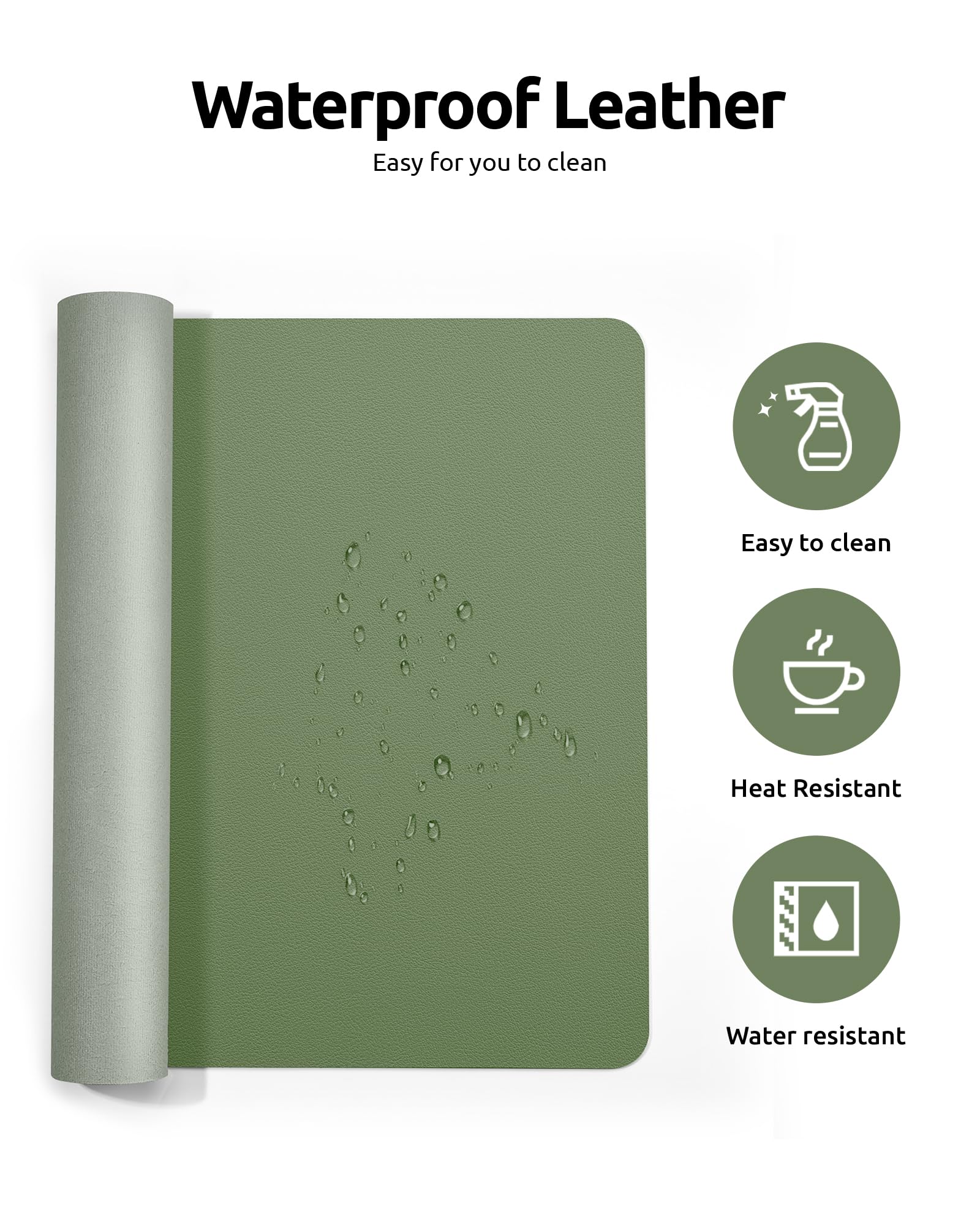 EASY TO CLEAN: Waterproof leather desk pad. Just use cloth for basic clean: liquid, dust, grease and dirt. Wet cloth would be prefer if there are too much dirt in the desk mat.