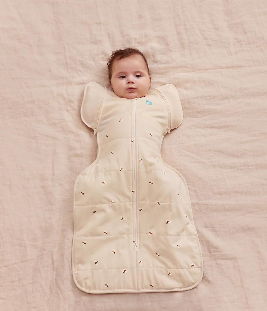 Love To Dream Swaddle UP Transition Bag Once your baby starts to show signs of rolling, it's time to stop swaddling and transition them to arms free sleep. Our unique Swaddle Up Transition Bag is an easy way manage this change, while helping to maintain an established sleep routine. Specially designed to provide the secure feeling of a swaddle, while the zip-off wings allow a gentler and gradual move to arms-free sleeping. Designed to Preserve Sleep Routine & Keeps Baby Settled Our uniquely designed zip-off wings allow for one arm to be free & the other swaddled, maintaining that familiar swaddled feeling. After a few nights, simply remove the remaining wing so both arms are free. This is an easy way to achieving arms free sleep while helping to preserve an established sleep routine. Once both wings are removed, continue to use as a sleeping bag providing the snug feeling baby is used to for longer-lasting use. Arms-Free also allows older babies to push up or reposition when they roll over. Easy to Use, Hip-Friendly Design Our Swaddle UP Transition Bag is designed to provide ample room for baby's legs and hips to move naturally, allowing for healthy hip development. The clever two-way zipper mechanism means quick and easy diaper changes for any parent, grandparent or carer, even in the middle of the night. The light, super soft and stretchy fabric is ideal for warm room temperatures between 68°F & 75°F. Fabric content: Fabric content: 95% Viscose 5% Elastane. Our Swaddle Up Transition Bag is proudly crafted from LENZING ECOVERO. Certified eco-responsible and low-impact, LENZING ECOVERO is manufactured using sustainably sourced materials and generates up to 50% lower emissions and water impact than generic viscose. Our Ecovero range is made from silky, soft and moisture wicking fabric which feels beautiful on the skin and keeps your bub cool and dry in warm temperatures. From the unique original Swaddle Up, to bedding and Self-Soothing Toys, the Love To Dream range has grown to provide a portfolio of sleep solutions designed for children up to four years old.