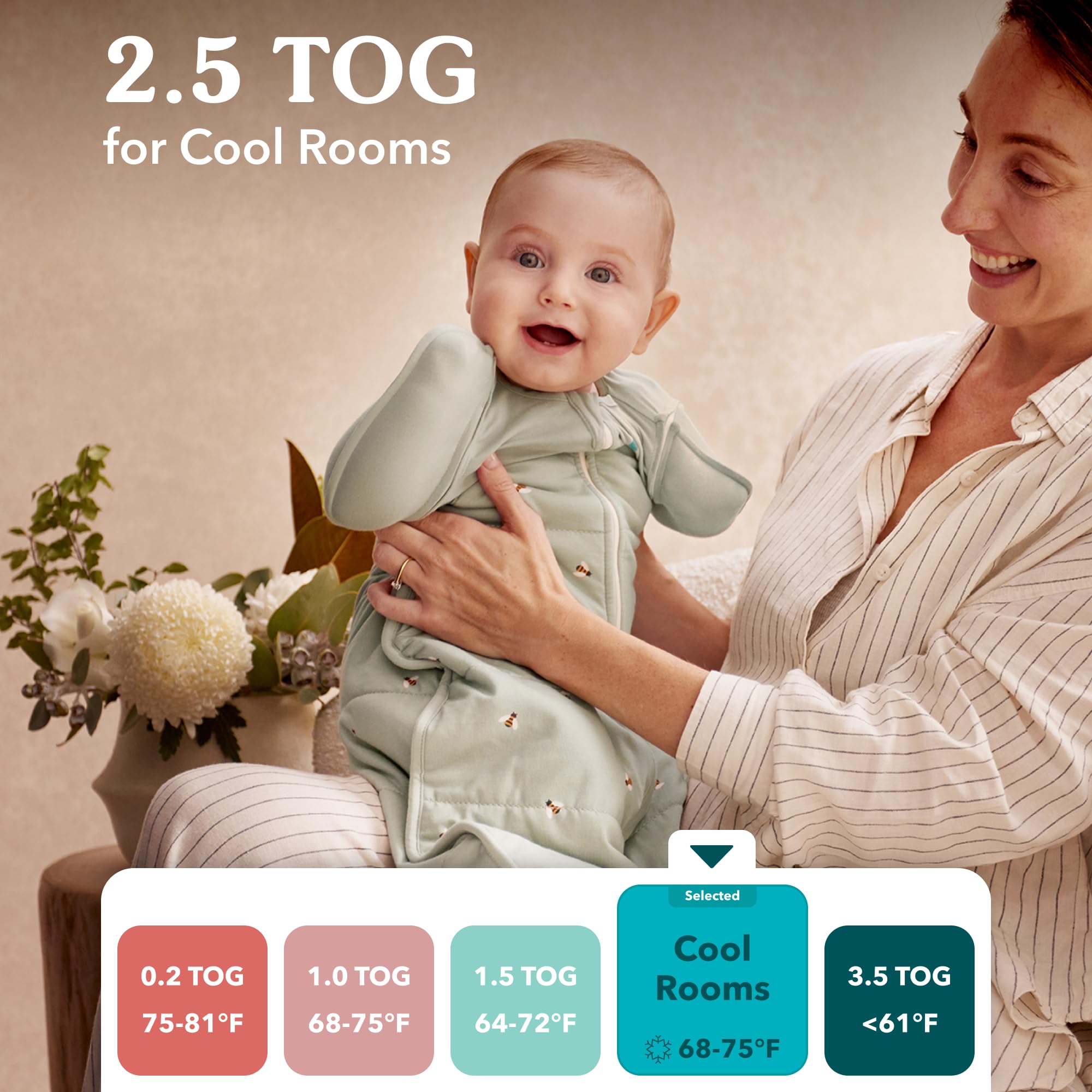 TRIPLE-LAYERED CONSTRUCTION: featuring a built-in blanket for superior warmth & comfort. Designed with 2.5 TOG fabric, an ideal choice for COOL room temperatures between 61-68 degrees.