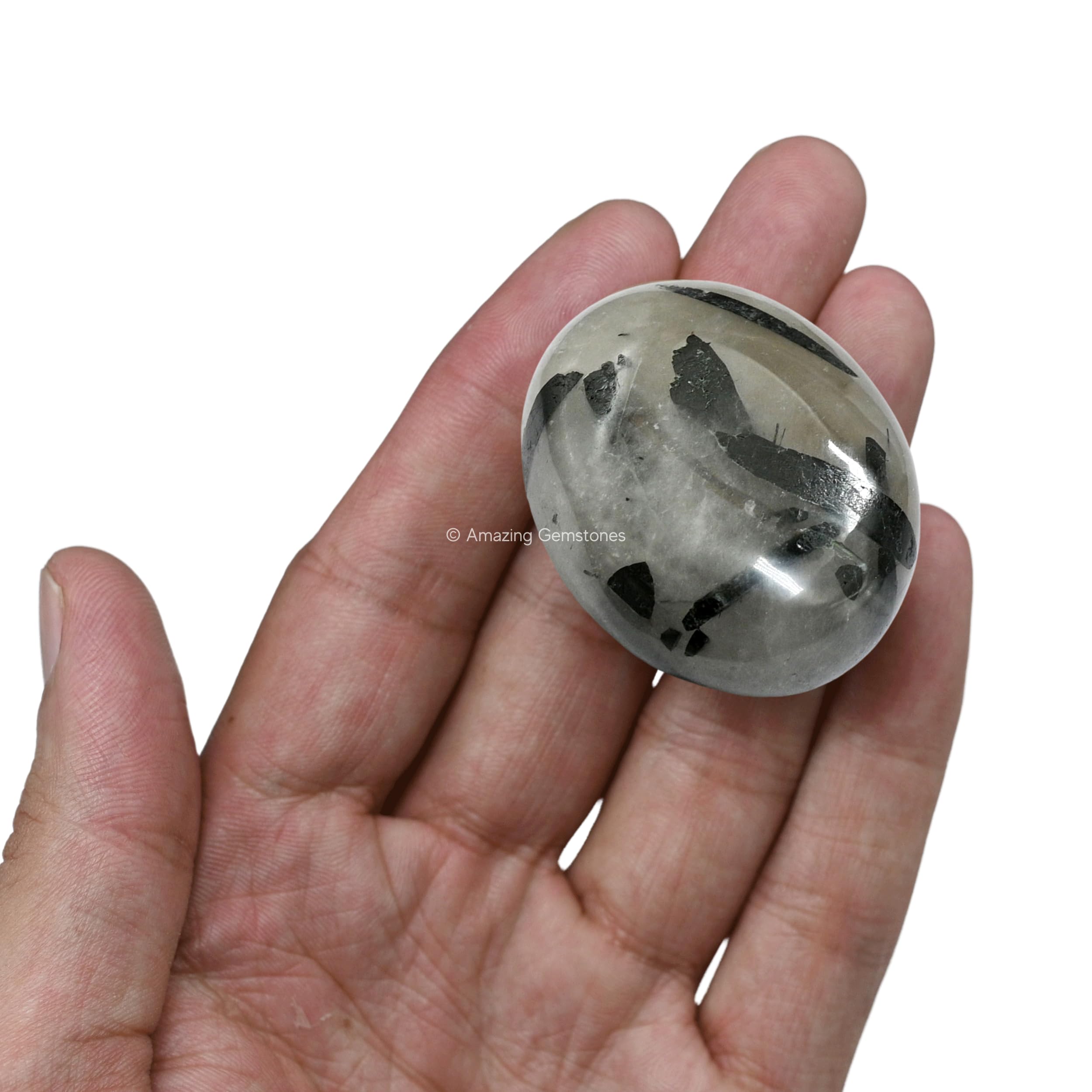 Large Black Rutilated Quartz Palm Stone : Our black rutilated quartz palm stone is large that perfectly fits in your palm and perfect for those who appreciate crystals and healing stones. This authentic black rutilated quartz stone is ideal for reiki supplies and other spiritual practices, making it a thoughtful birthday gifts for men and women.