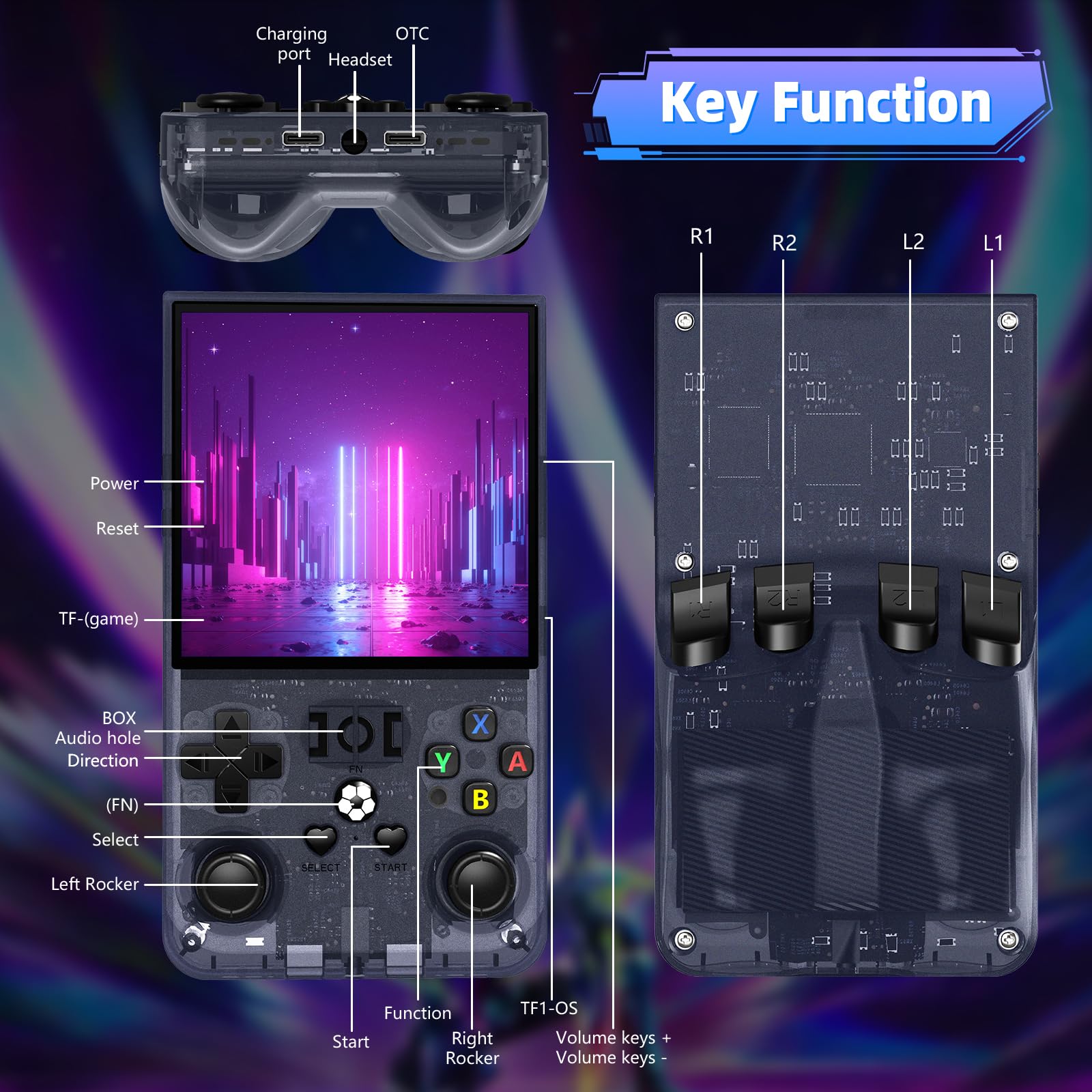 Diverse Game Genres: This R36s handheld game console comes pre-loaded with thousands of games. With its 64GB storage capacity, you can enjoy a vast library of games, and there's an option to insert an additional TF card to expand your game collection even further