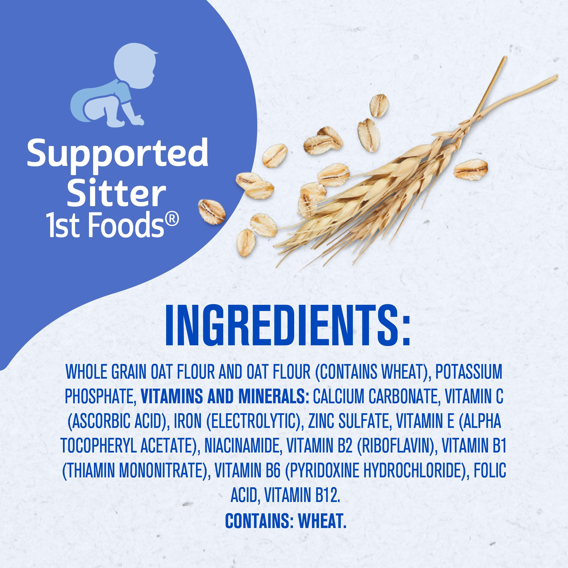 NUTRITIOUS: Gerber baby oatmeal has 8 grams of whole grains per serving, 60% of the daily value of iron, 30% of the daily value of zinc, 25% of the daily value of vitamin B12, along with other B vitamins that support growth and development