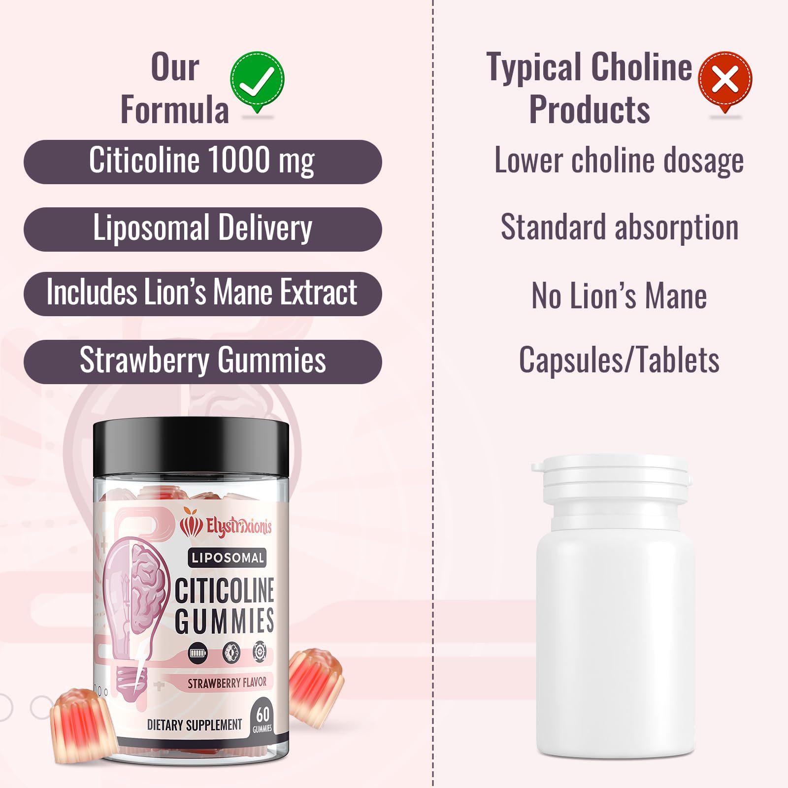 Trusted Brand: Elystrixionis is committed to delivering high-quality products. This carefully formulated choline supplement comes in a convenient strawberry gummy form, making it suitable and enjoyable for daily use