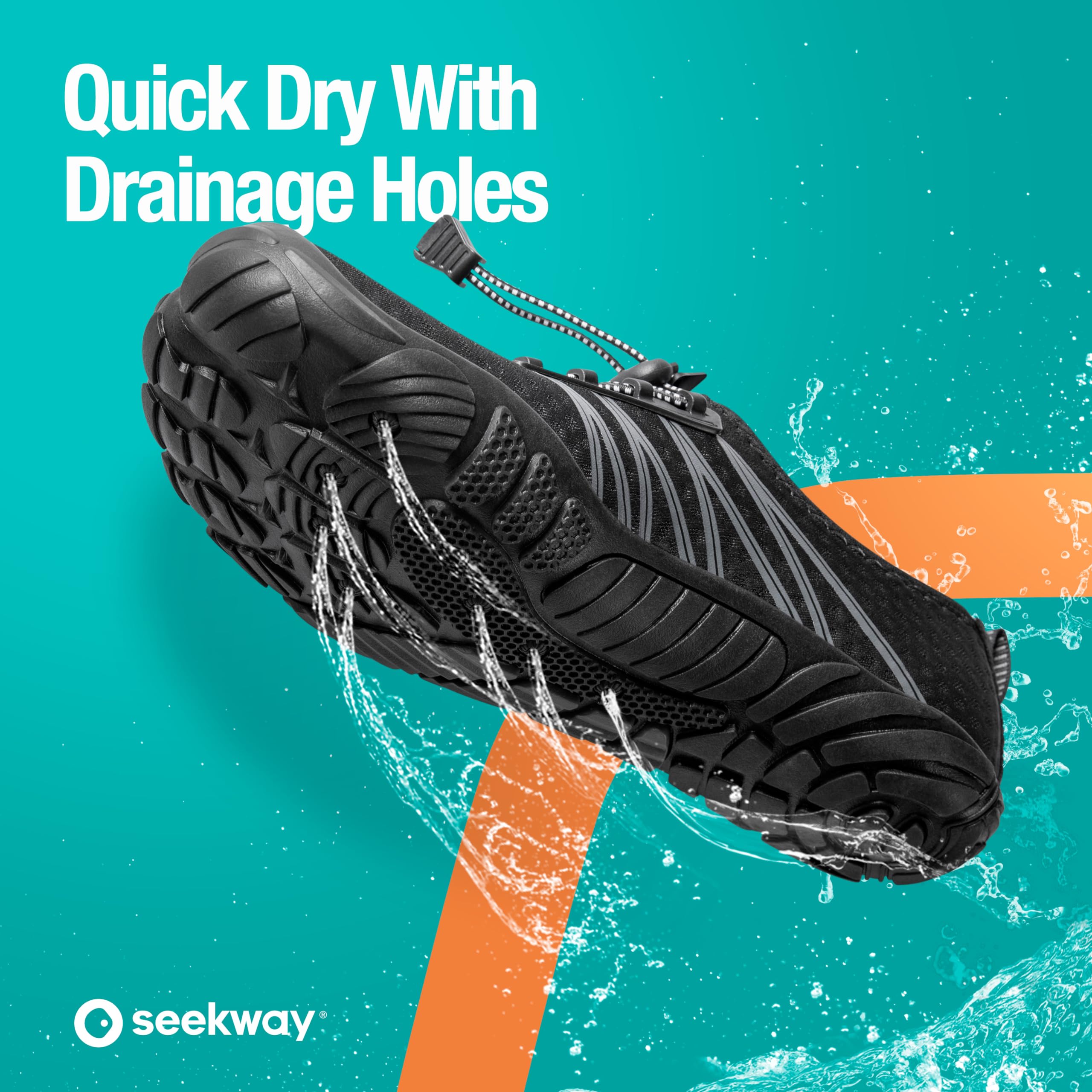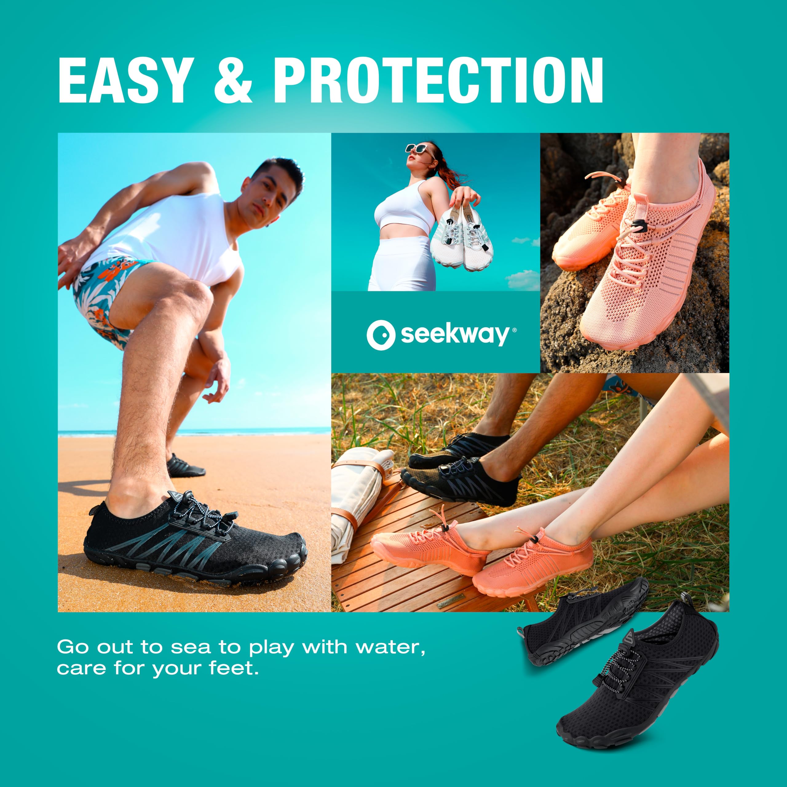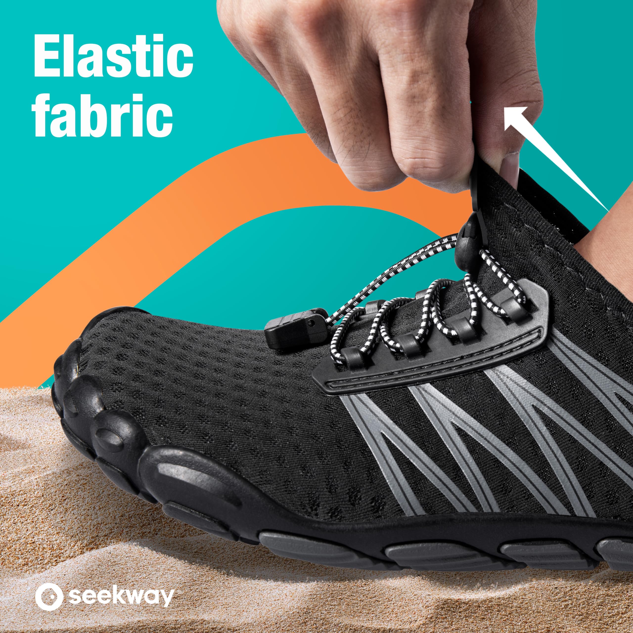 All-round Protection:Thick rubber soles and a toe cap keep your feet completely protected from sharp objects and provide great cushioning. The 3D non-slip treads provide exceptional grip even in slippery conditions. This makes it a great choice for outdoor sports.