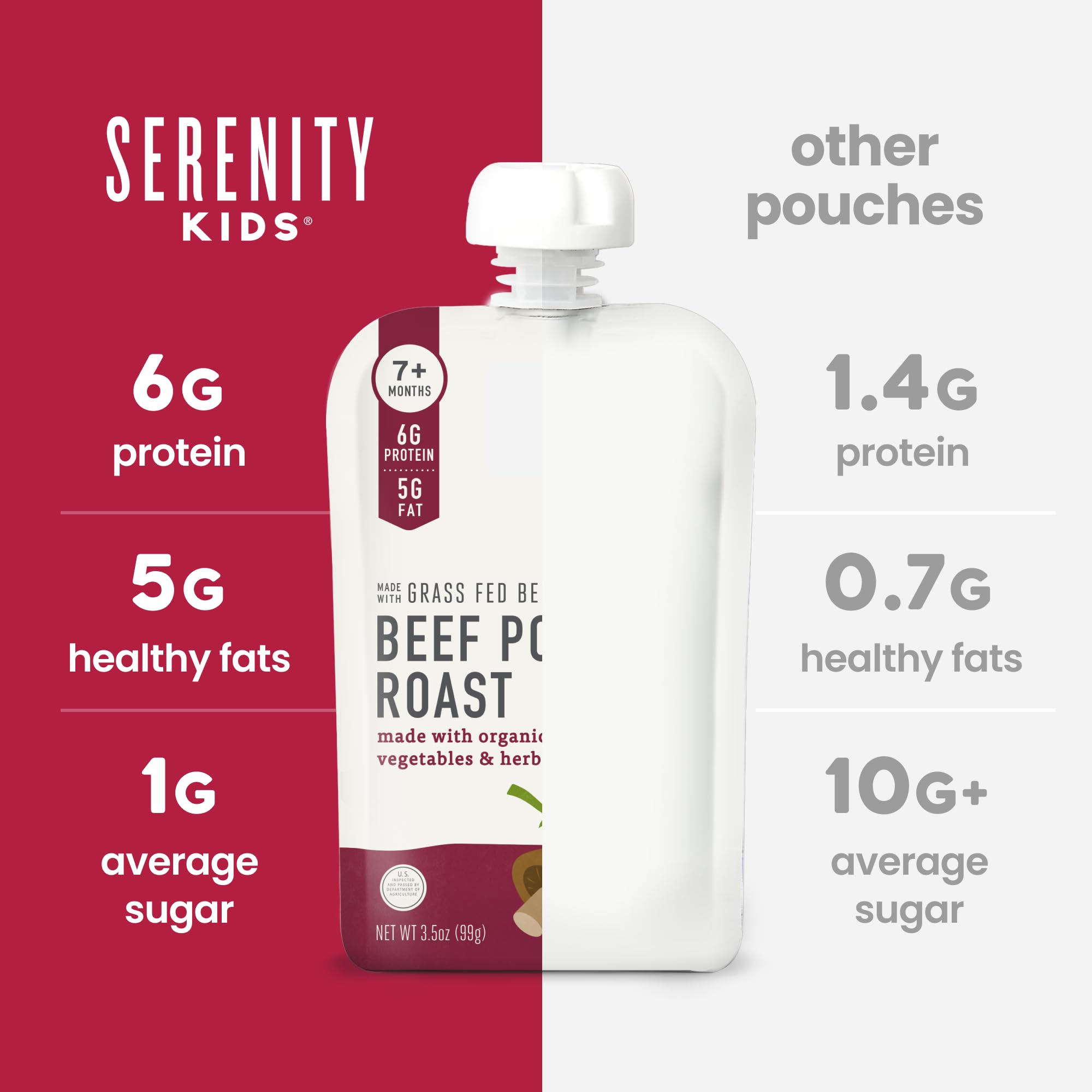 Serenity Kids Beef Bliss: Dive into the pure goodness of Serenity Kids Beef Pot Roast Baby Food Pouches, packed with grass-fed beef and organic veggies. This meat pouch for toddlers is a tasty fall toddler meal perfect for warming up those chilly autumn days