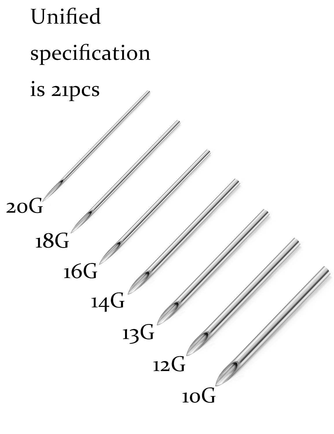[ITEM CONTAIN]: You Will Receive 21 Pieces Mix Size Piercing Needles 20G 18G 16G 14G 13G 12G 10G Three of Each Size, Individually Packaged, Safe and Hygienic. All Of Them Are Beautiful And Elegant, Multiple Choices For Meeting Your Various Needs.