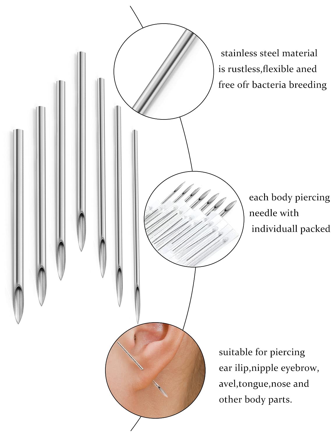 [SUITABLE FOR USE]: These Piercing Needles Can Be Used For Belly Button Rings, Tongue Rings, Septum Rings, Nose Rings Piercing, Lip Rings, Eyebrow Rings, Ear Piercing, Cartilage Tragus Helix Rook Conch Daith Earrings Piercing Jewelry