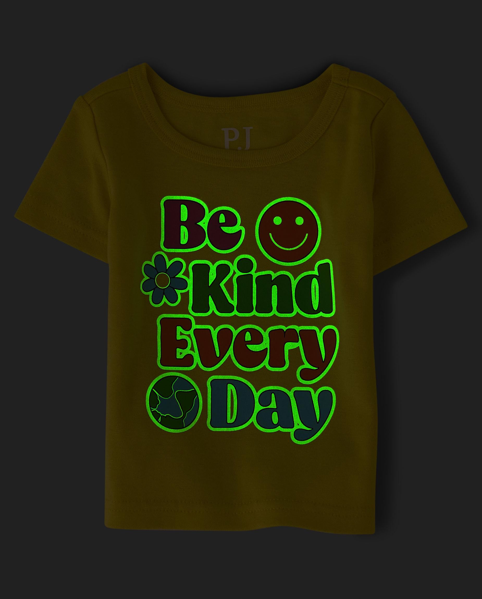PAJAMA TOP — Features short sleeves, rib-knit crew neck and glow-in-the-dark 'Be Kind Every Day' with icons graphic design at front. For best glow effect, expose to light before wearing.