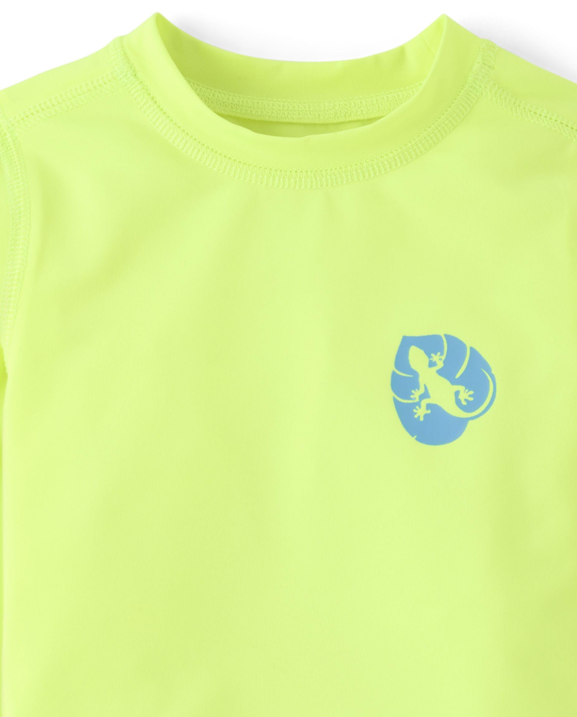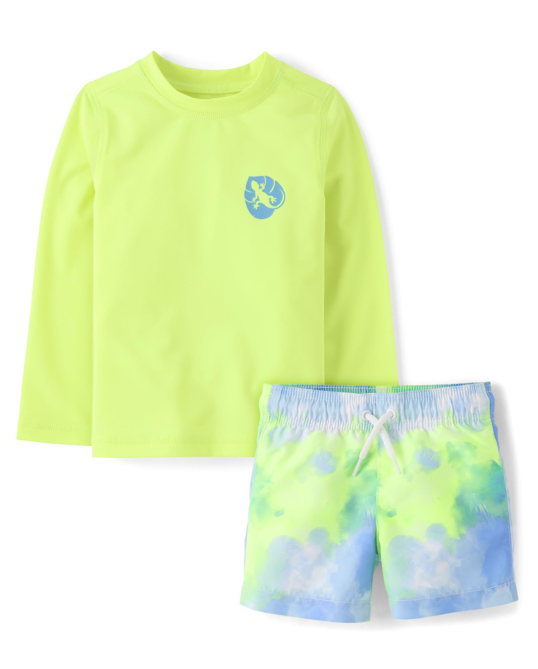 FABRICATION: 86% recycled polyester/14% spandex jersey rashguard, 100% recycled polyester twill trunks, 100% mesh trunks lining, imported