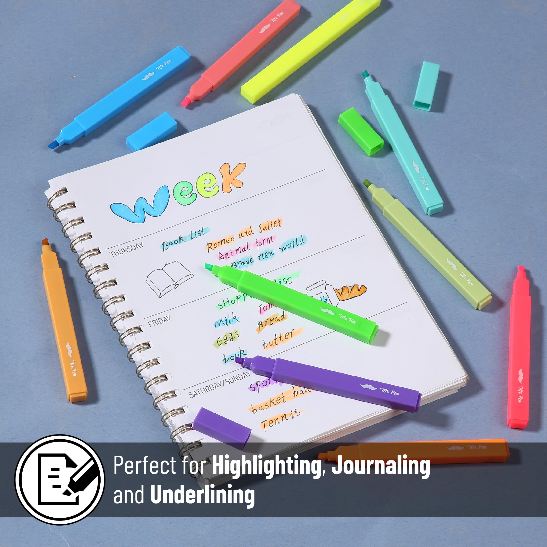 Mr. Pen aesthetic highlighters come in a set of 10 beautifully vibrant colors, perfect for making your notes and projects stand out.