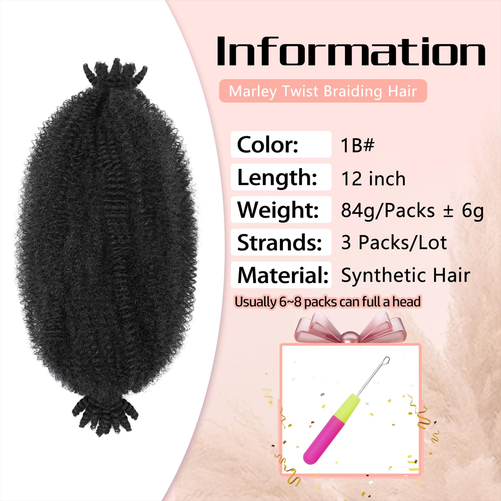 1. Advantages: Afro Twist Hair Made Of High-Quality Synthetic Fiber, The Hair Extensions Look Natural, Soft, Strong, Imitating Real Hair, Preventing Frizz, Tangling And Shedding, Bringing A Long-Lasting And Smooth Effect