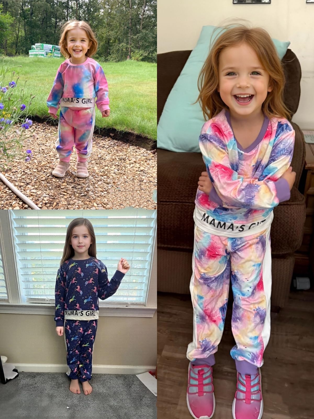 Cute Toddler Girls Sweatsuits -This Toddler girl outfits features a round neck design, loose hem, and elastic waistband pants, which are very loose to wear and give children more freedom.