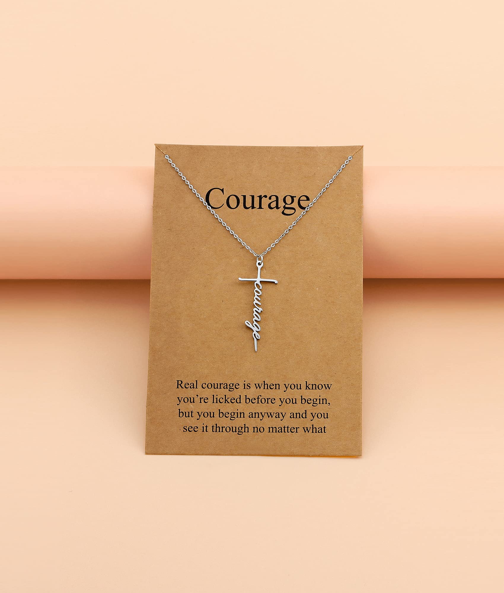 Being a People of God is a High Calling that Christian People Should Aspire For. A Great Gift for Religious Jewelry. Featuring "Courage" Written Inside A Beautiful Cross.