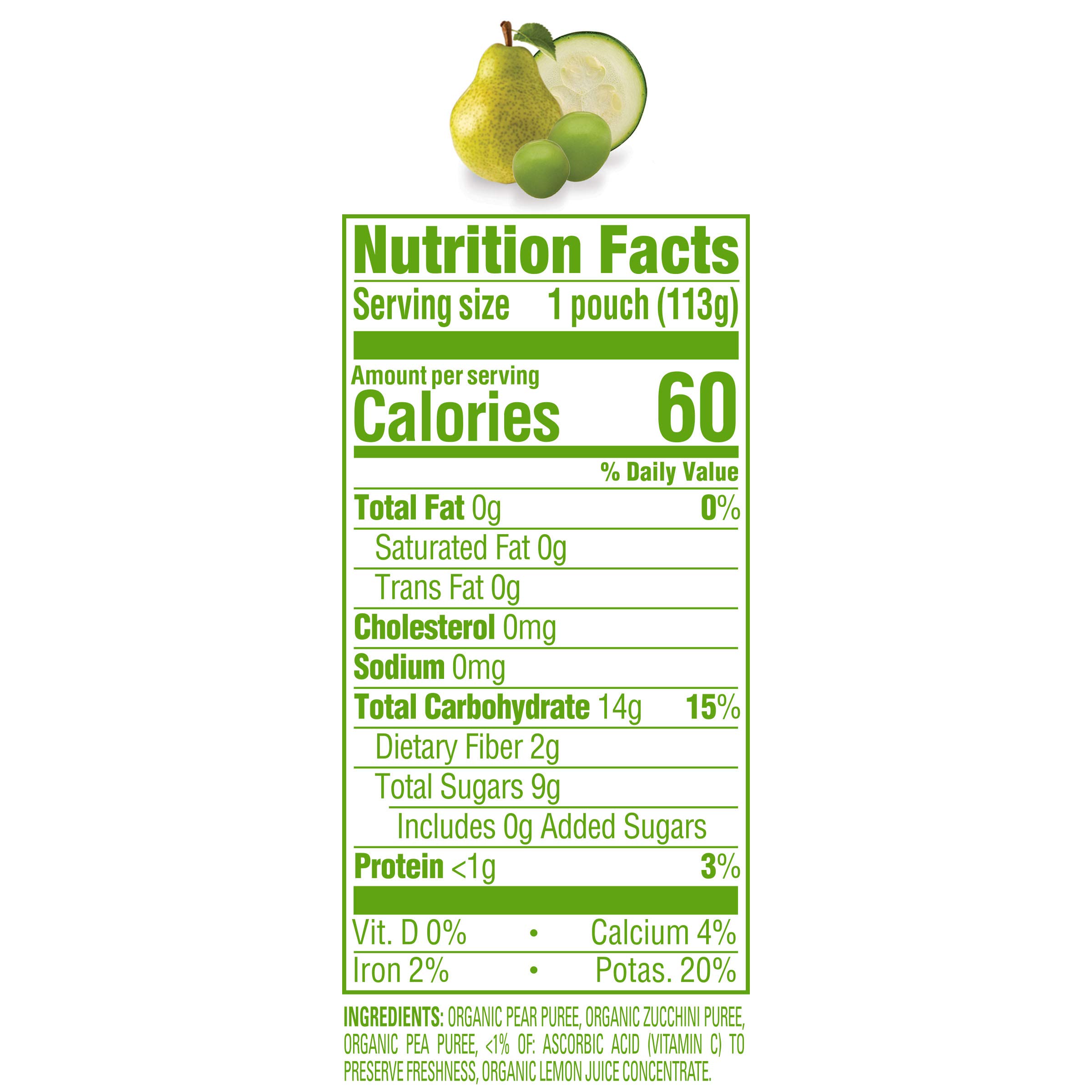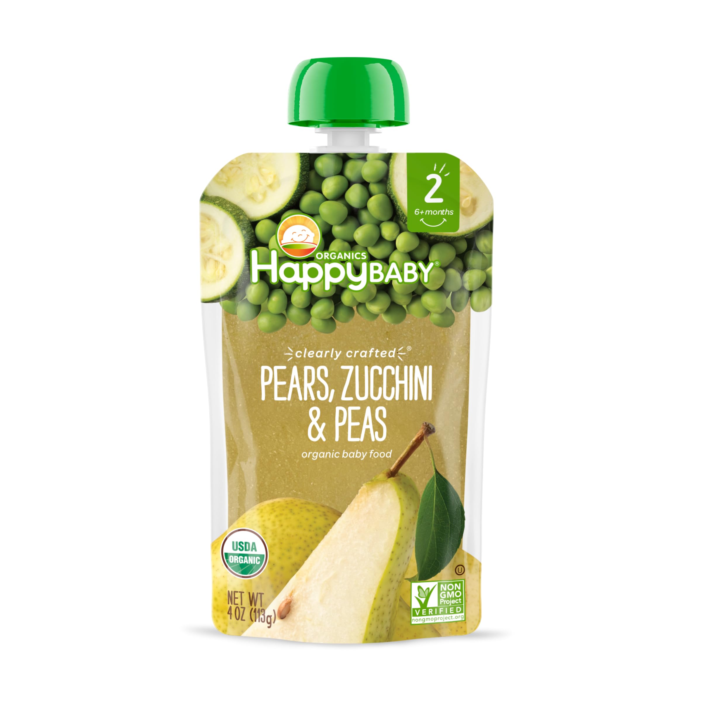 Organics HappyBaby Pears, Zucchini & Peas Flavored Organic Puree Baby Food, Non GMO, Kosher, 4 Ounces (Pack Of 16)