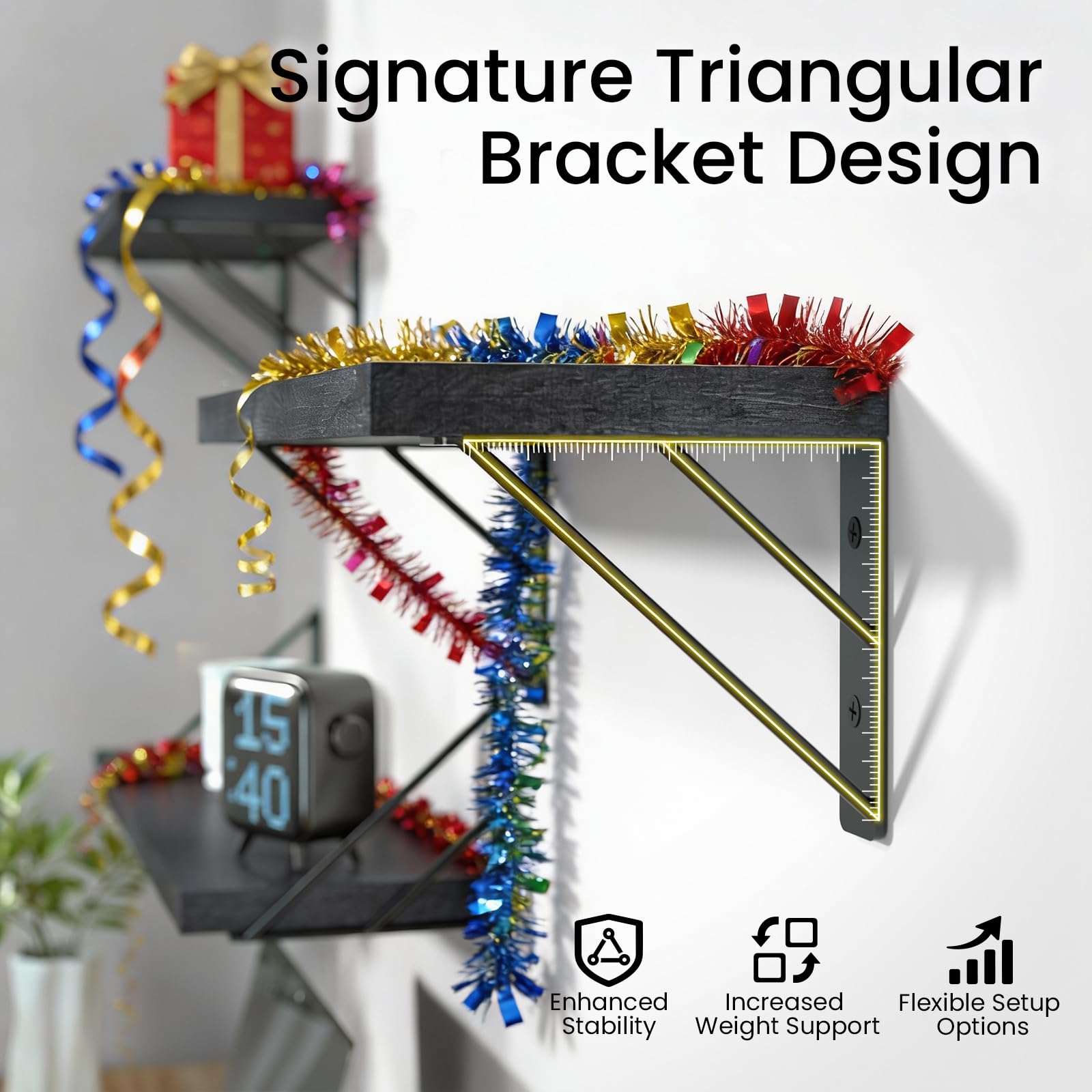 Stable Triangular Frame Wall Shelf – Reinforced triangular design ensures superior stability and even weight distribution. Each shelf supports up to 40 lbs, preventing sagging or tipping—ideal for books, décor, or kitchen storage.
