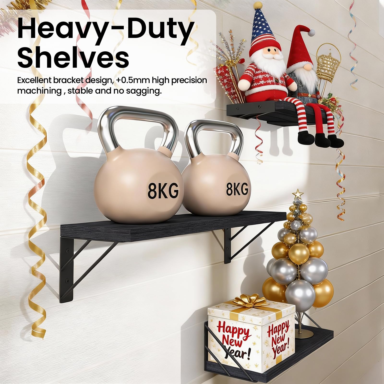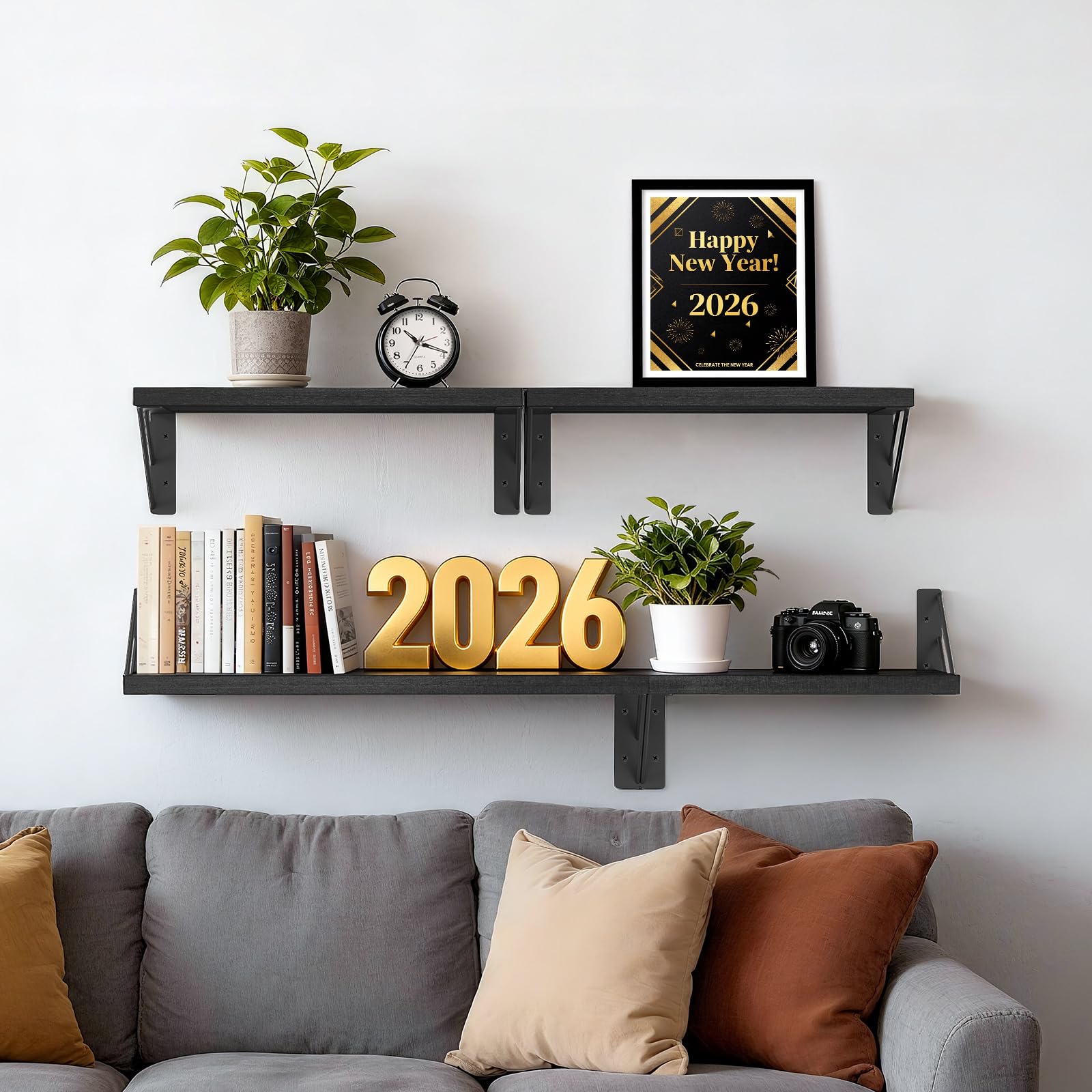 Display What Matters.Create a stylish display with our rustic wall-mounted shelves. Perfect to display decor, these offer ample space for books, decor, and more. The Black finish makes them a versatile addition to any room, enhancing your overall decor