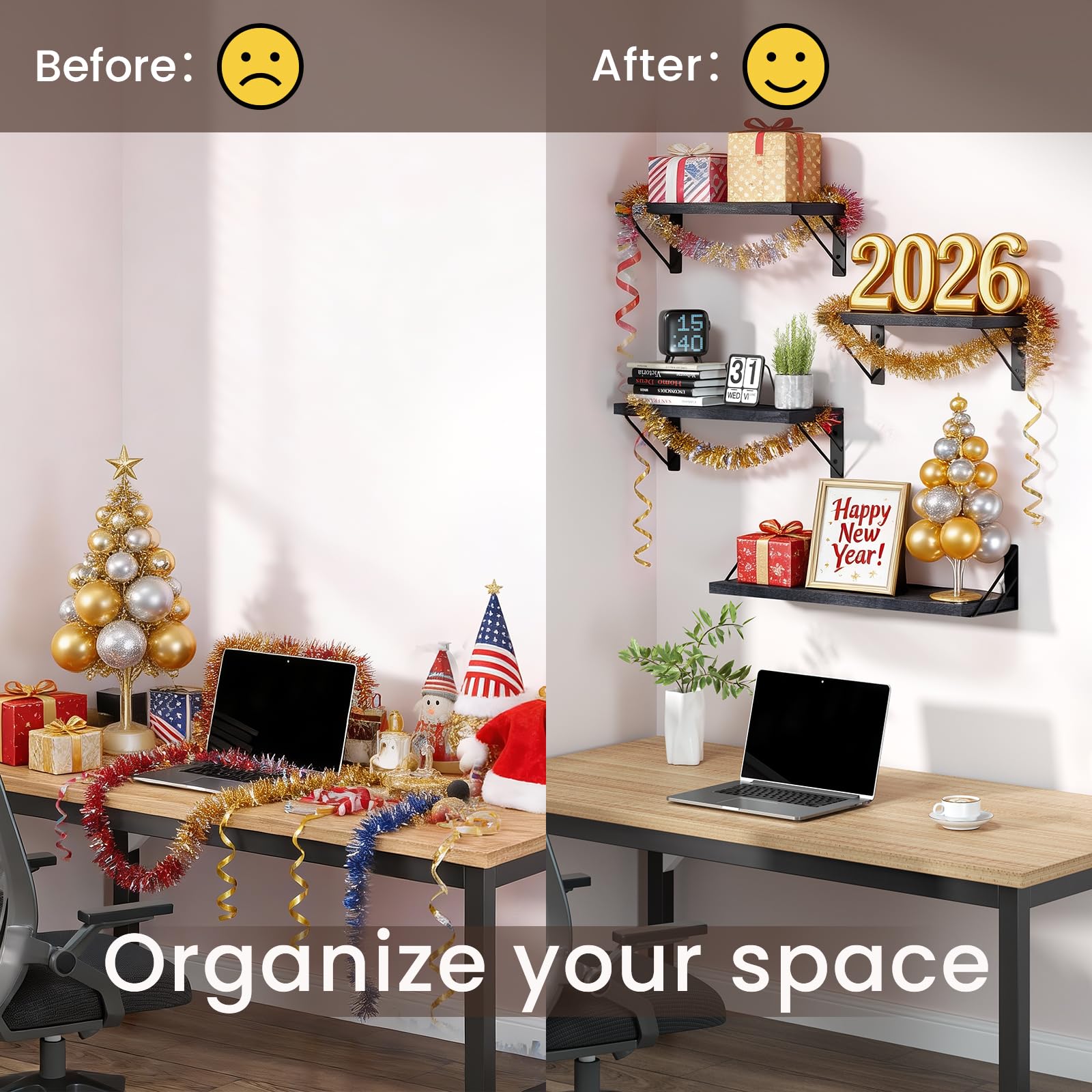 Quick & Easy Installation – Designed as an easy-to-install floating wall shelf, it solves common setup problems with clear instructions, included hardware, and compatibility with drywall, studs, or concrete walls. Perfect for renters and homeowners alike.