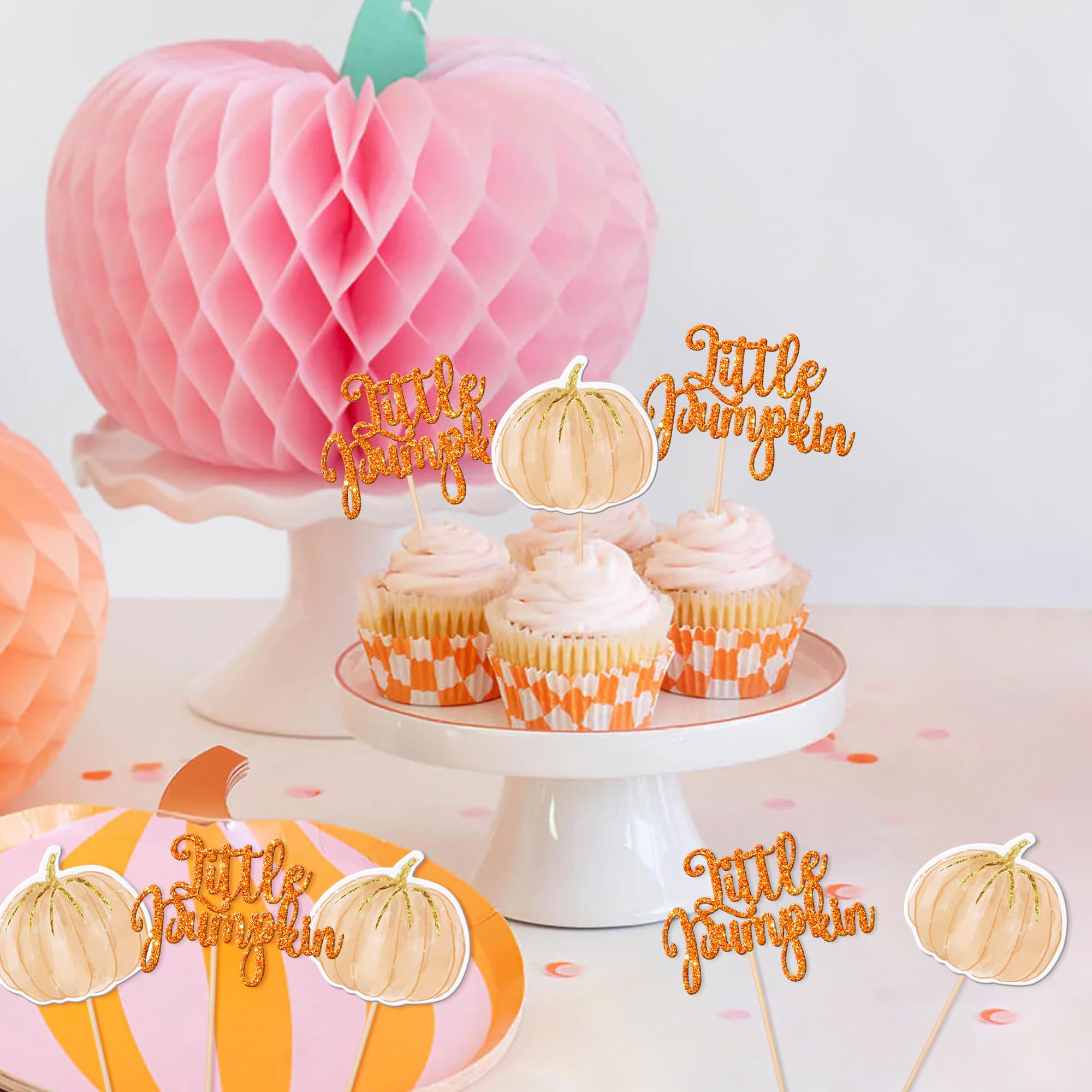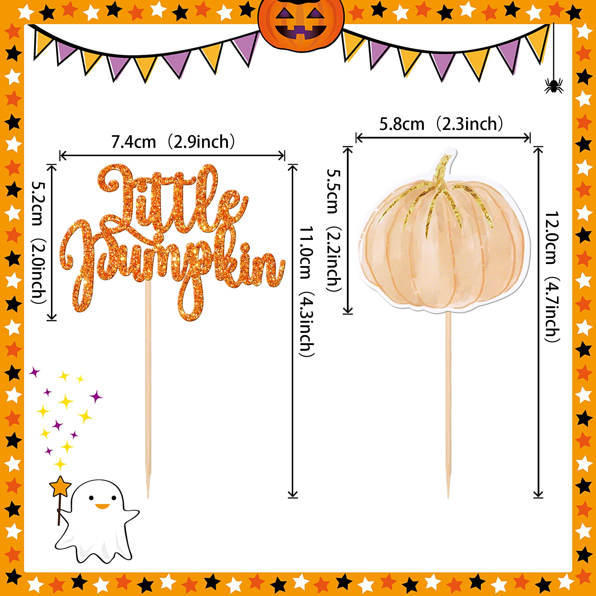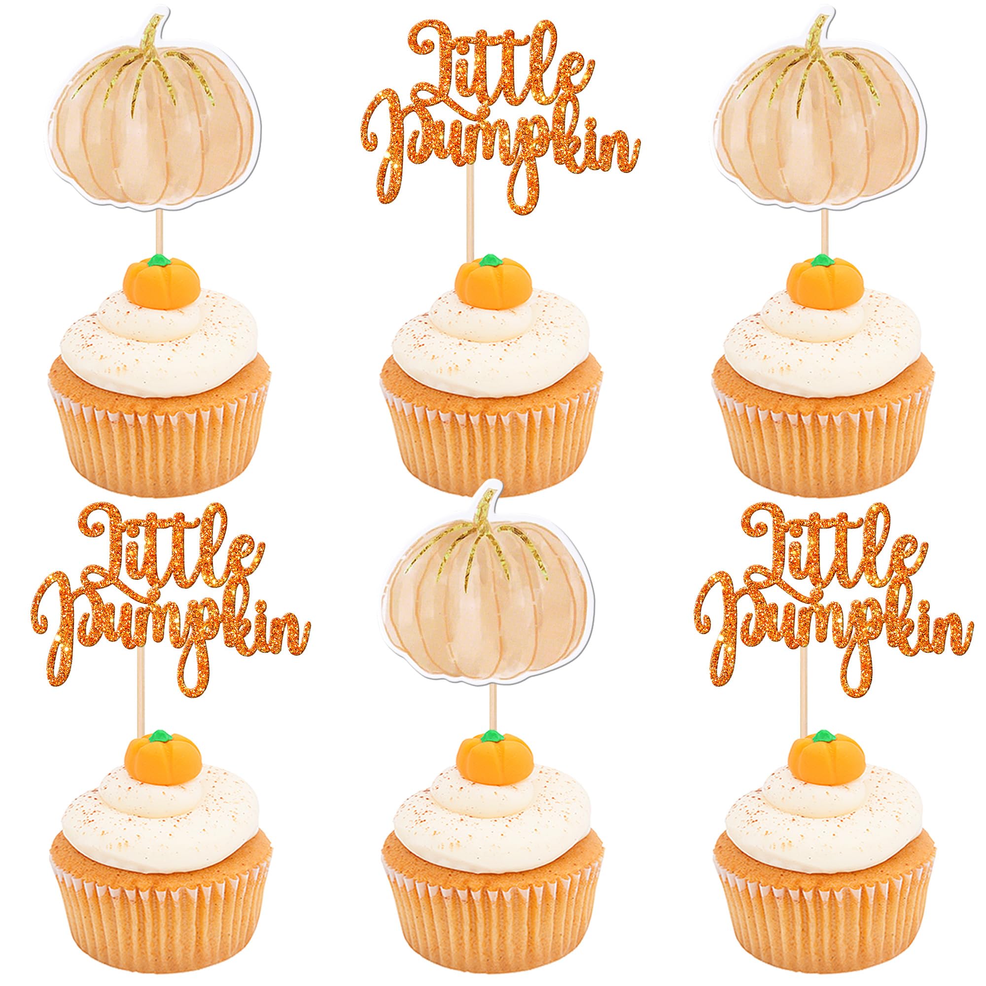 Little Pumpkin Cupcake Toppers Pumpkin Cupcake Picks Baby Shower Cupcake Decoration for Thanksgiving Birthday Baby Shower Gender Reveal Fall Theme Party Cake Decorations Supplies Perfect for little pumpkin theme party, fall harvest theme party, gender reveal theme party, thanksgiving theme party, baby shower theme party, kids birthday theme party cupcake decorations supplies. Pack of 36 pcs, 18 pcs of each design. The size is 2.9*4.3/ 2.3*4.7 inch ( with stick ) Made of high quality paper card stock,thick and sturdy. These cupcake toppers are single glitter, the back is white, and they are intended for decoration only, please do not put them in oven or microwave. If the item you received has any defects, please contact us for refund.we will deal with it within 24 hours.