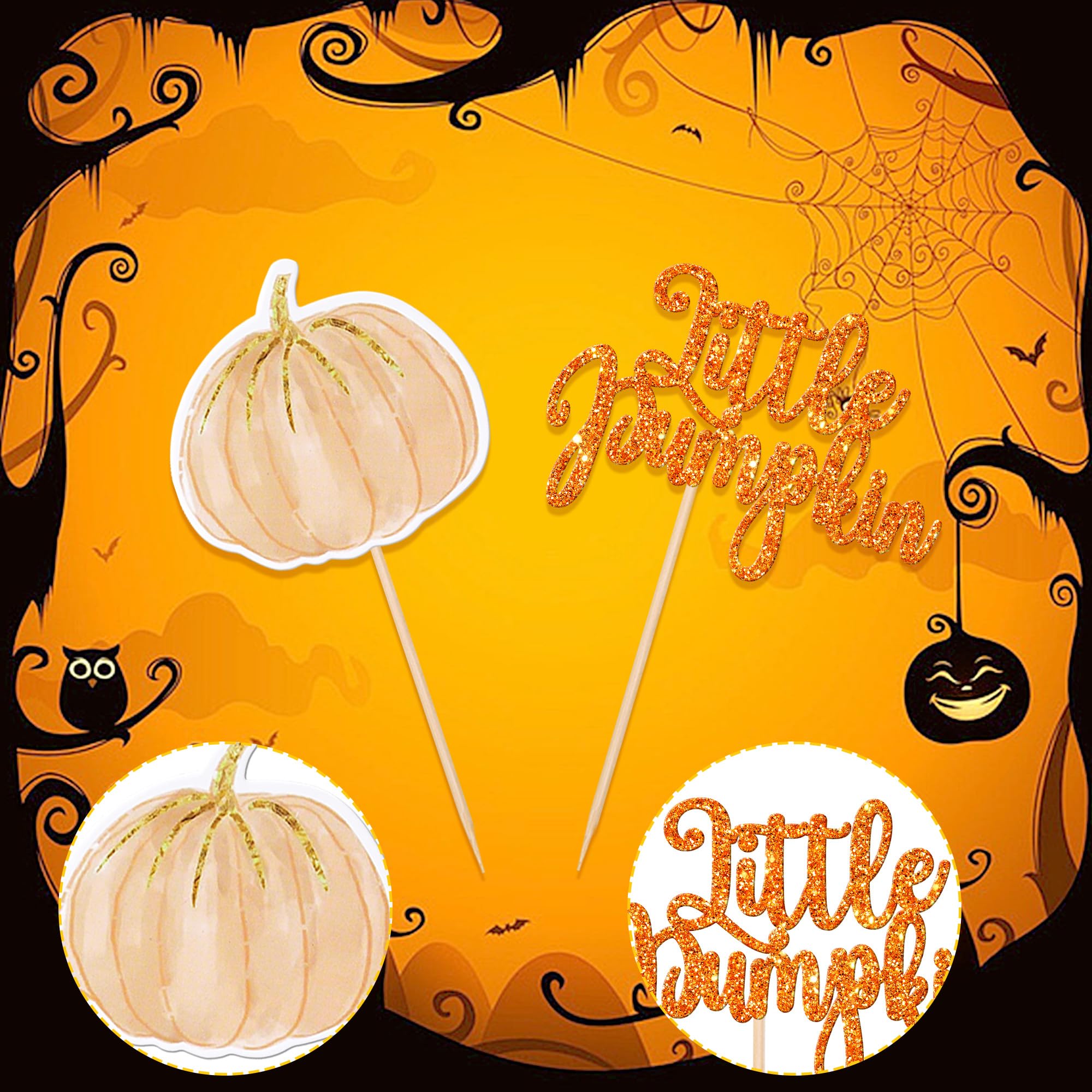 No Assembled Required ! These little pumpkin cupcake toppers are assembled in advance,so you don't need to DIY it by yourself,which can save you time and effort during the process of party preparation; You can insert them into your cake or cupcakes and adjust the suitable height to show better effects.