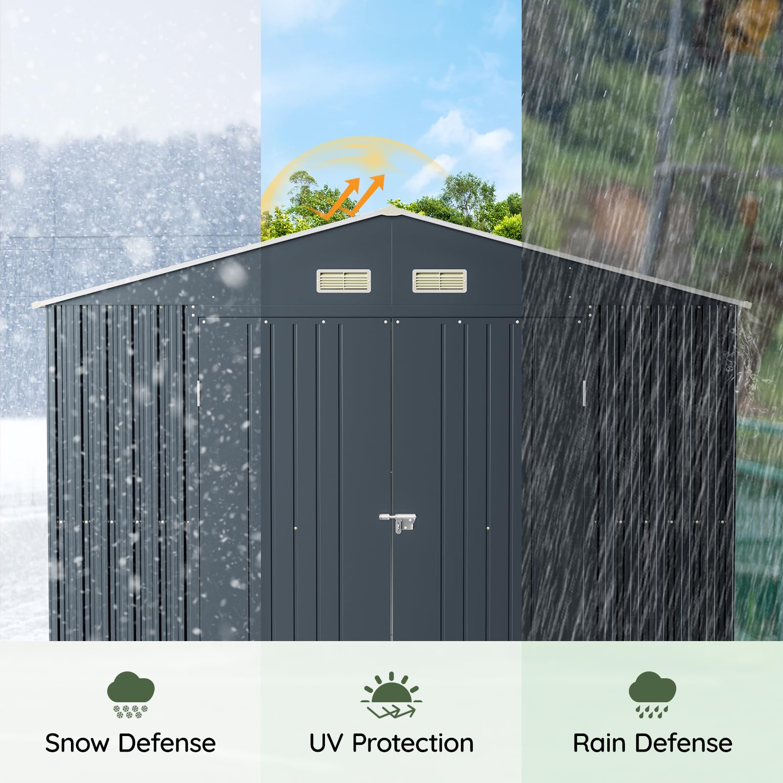 Durable & Weather-Resistant Steel Construction – Built with high-quality galvanized steel for long-lasting durability and protection against rust, rain, and UV exposure.