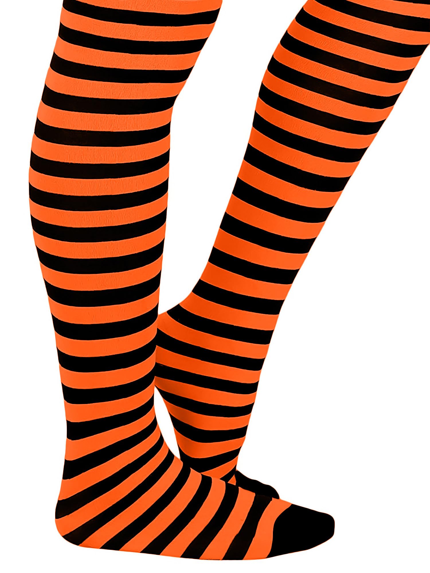 RECOMMENDED CARE: Hand wash warm. Only non-chlorine bleach when needed. Drip dry. Do not iron. PACKAGE INCLUDED: Black and Neon Orange Nylon Striped Tights for Women Opaque Stripe Pantyhose Halloween Cosplay Hose - One Size