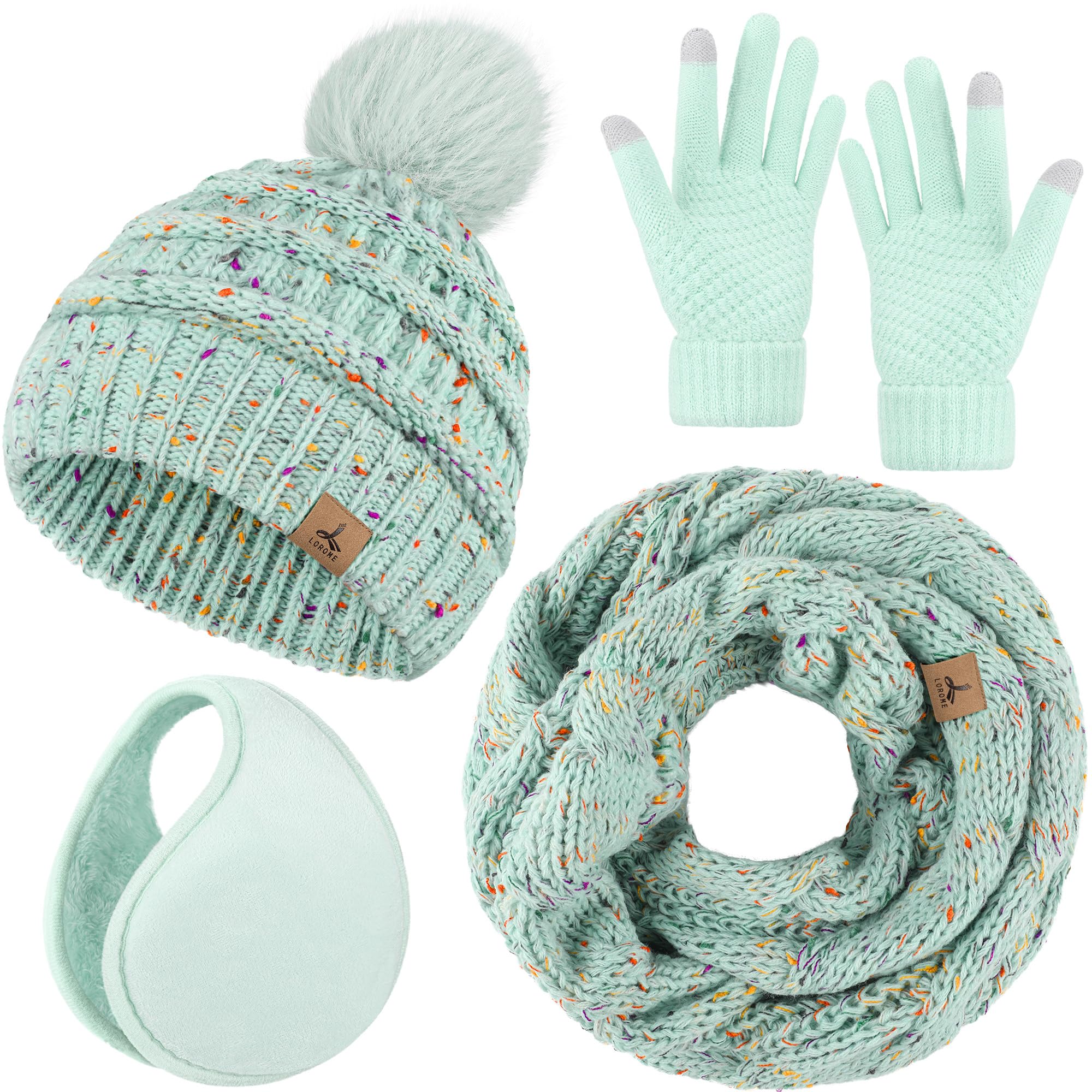 What You will Get -- 1 set mint green ombre winter warmth set that includes1 PCS beanie hat for women, 1 PCS scarf for women winter, 1 Pair touch screen gloves and 1 PCS padded ear warmer, suitable for womens winter set.