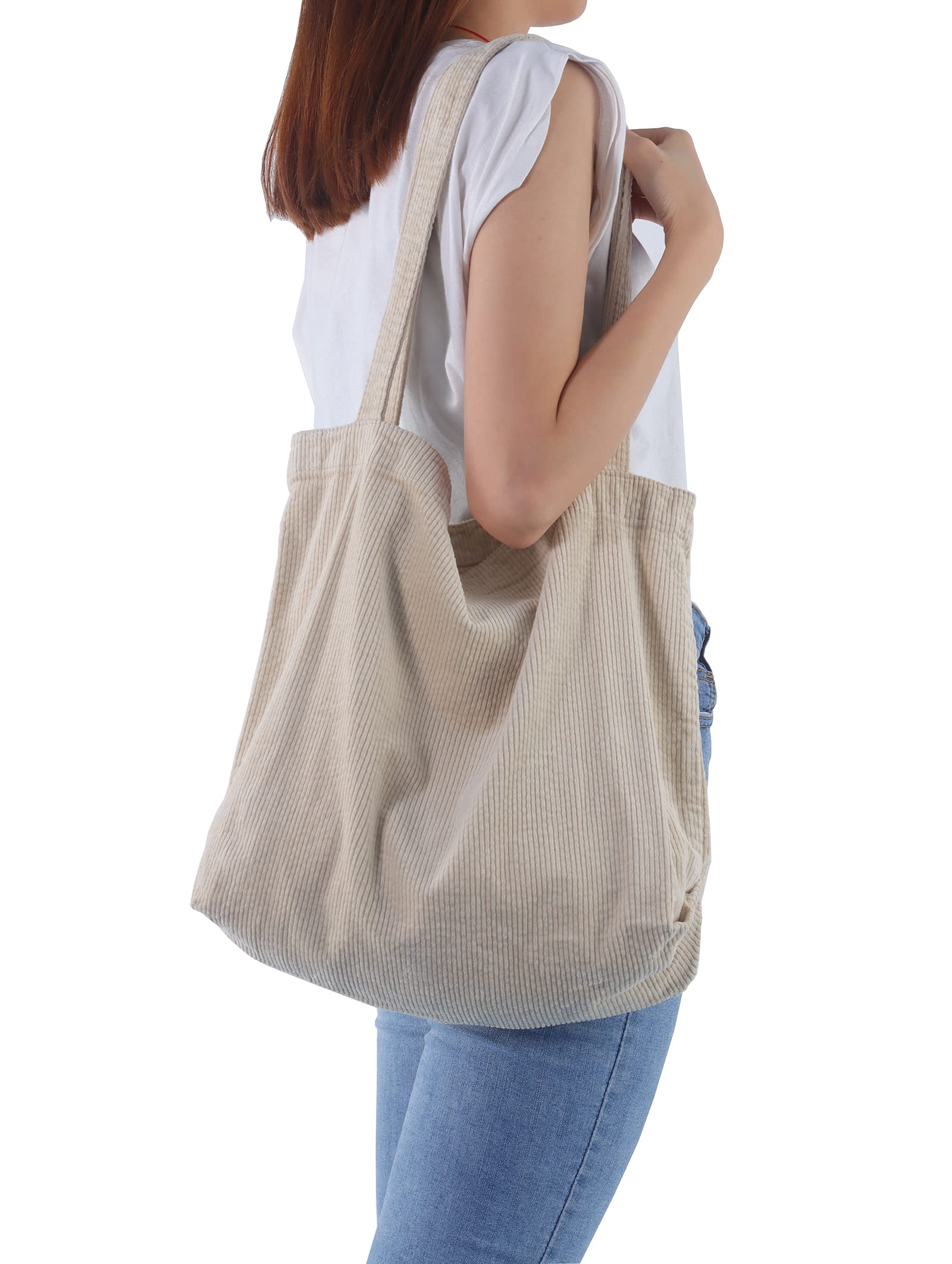 【Premium Corduroy Material – Soft, Durable & Easy-Clean】 Crafted from high-quality corduroy fabric, this women's tote bag offers a soft, skin-friendly feel while being durable and washable. The sturdy corduroy material resists wear and tear, making it a reliable daily bag. Simply wipe or hand wash to keep it fresh. A fashionable corduroy tote bag for women who love both style and practicality.