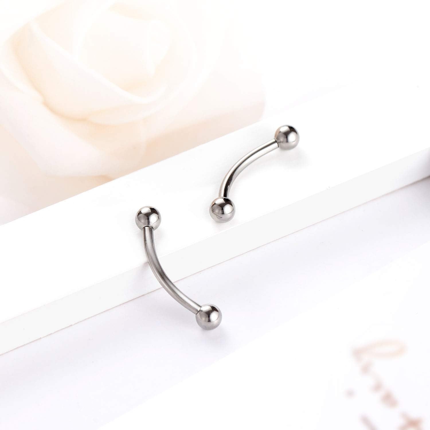 Package: include 1 pair curved eyebrow ring and conme with a velvet bag