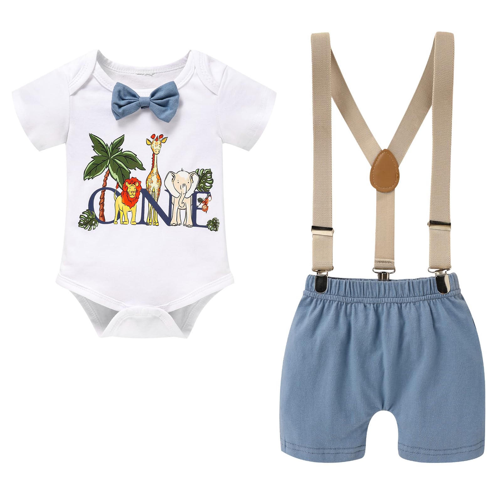 ð¯ãWild One Birthday Outfit for Boy BabyãBaby boys wild one 1st birthday outfits lion jungle safari animals cake smash outfit for jungle woodland animals first birthday party smash cake pictures. Jungle safari theme party decorations forest animal theme / wild one theme birthday party supplies includes Romper+Suspenders+Diaper Cover Shorts. First birthday photos outfit can as birthday decorations, woodland creature 1st birthday outfit for 1 year old baby boy first birthday;